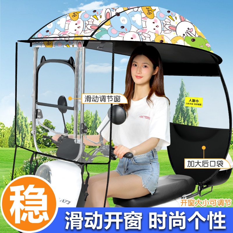 新款电动车雨棚蓬电瓶车挡风罩摩托车遮阳伞防雨棚防晒罩折叠快拆