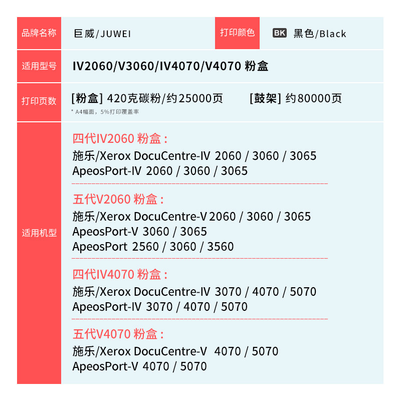 适用富士施乐2060粉盒DocuCentre-IV V 3060 3065碳粉四代/五代ApeosProt 2560 3560墨粉3070 4070 5070粉筒