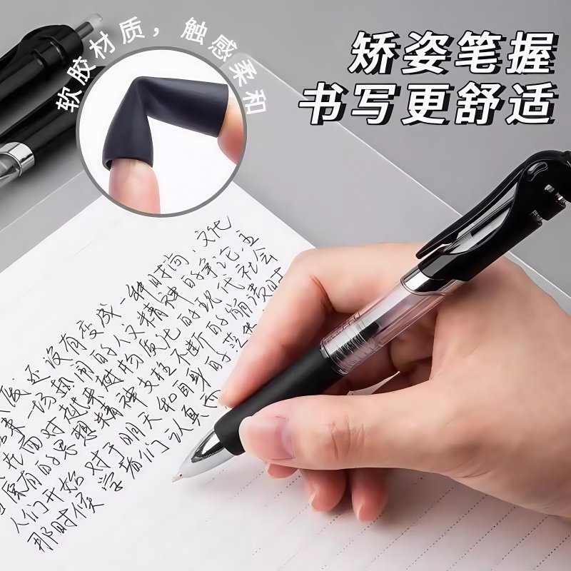 ST刷题笔高颜值按动中性笔圆珠笔黑色水笔小学生专用考试0.5速干碳素笔水性黑笔按压式做笔记签字笔非按斤卖