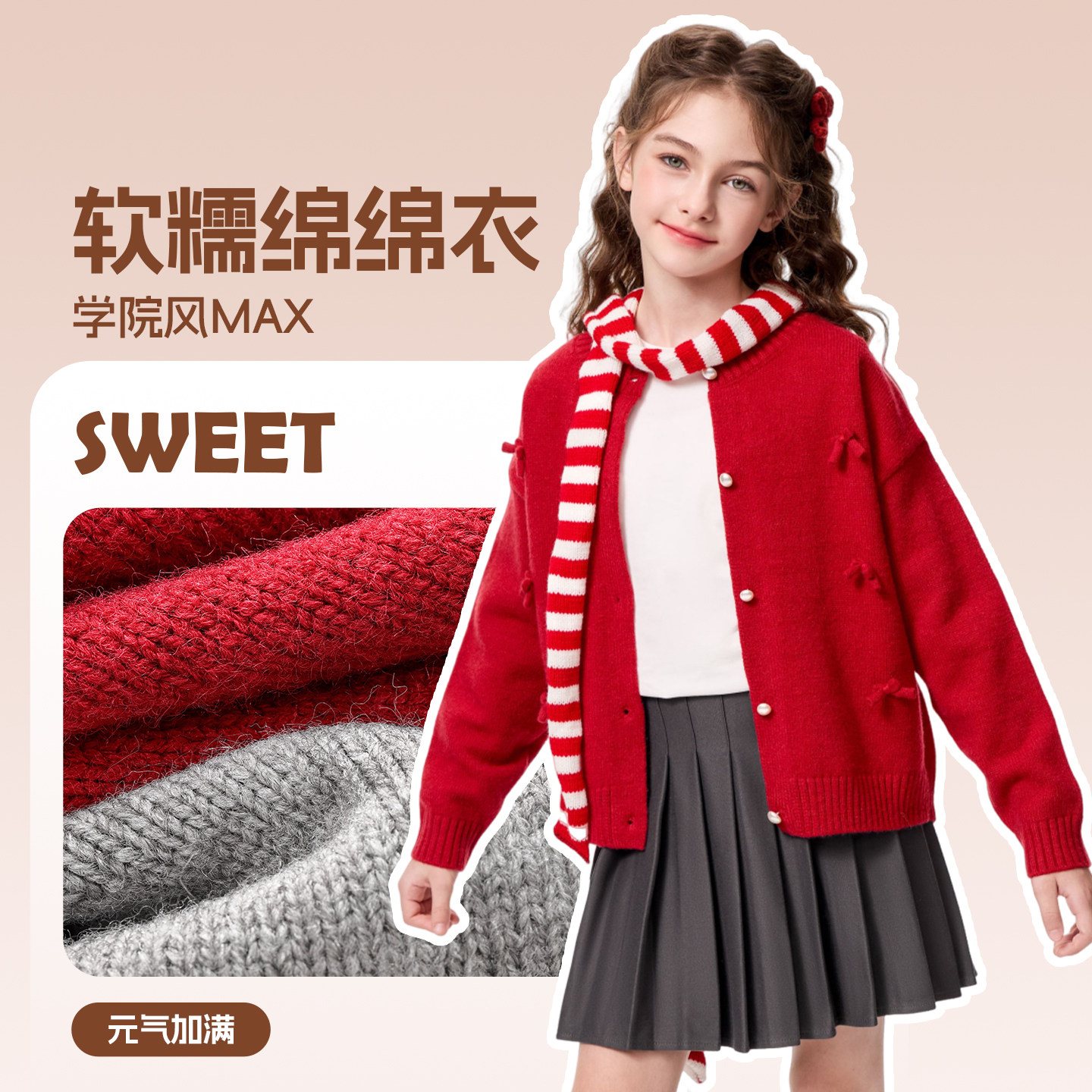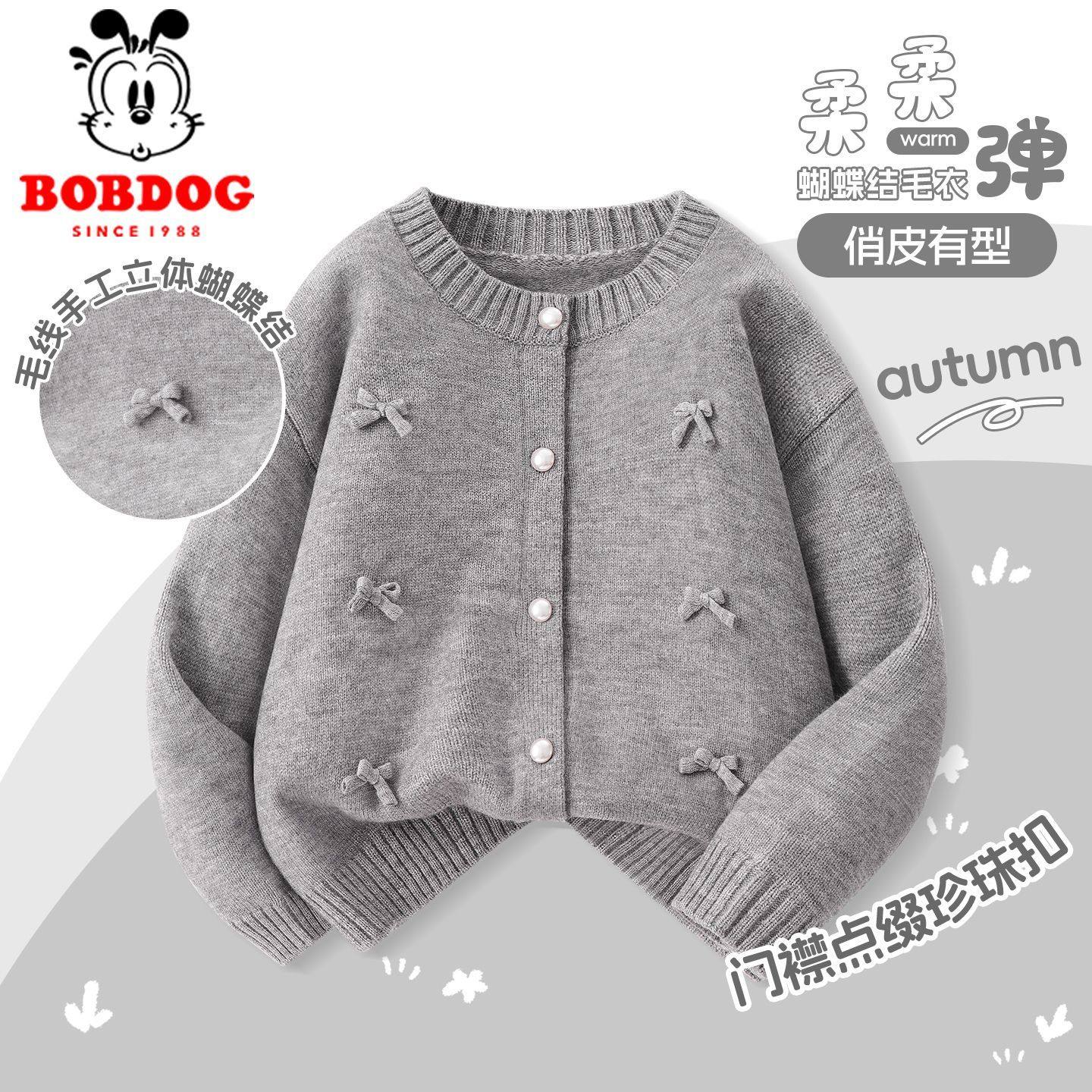 巴布豆女童毛衣秋冬款2025新款儿童洋气开衫公主风中大童冬装上衣