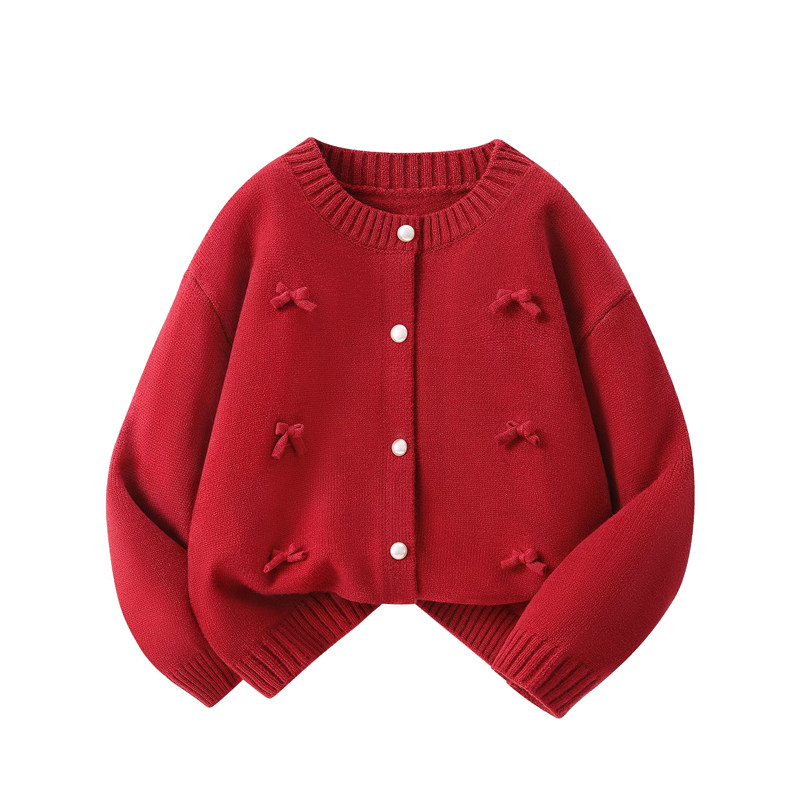 [骏马福裳]齐齐熊男童毛衣开衫冬装新年红色加厚宝宝毛线外套上衣