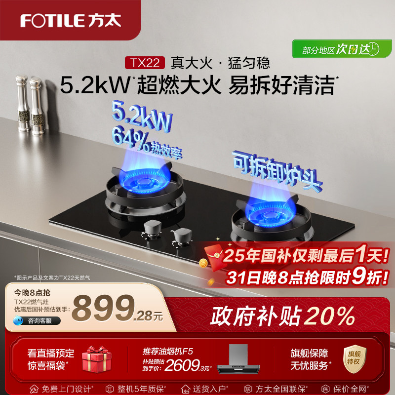 【新品】方太燃气灶官方旗舰店TX22小尺寸家用天然气灶具煤气灶