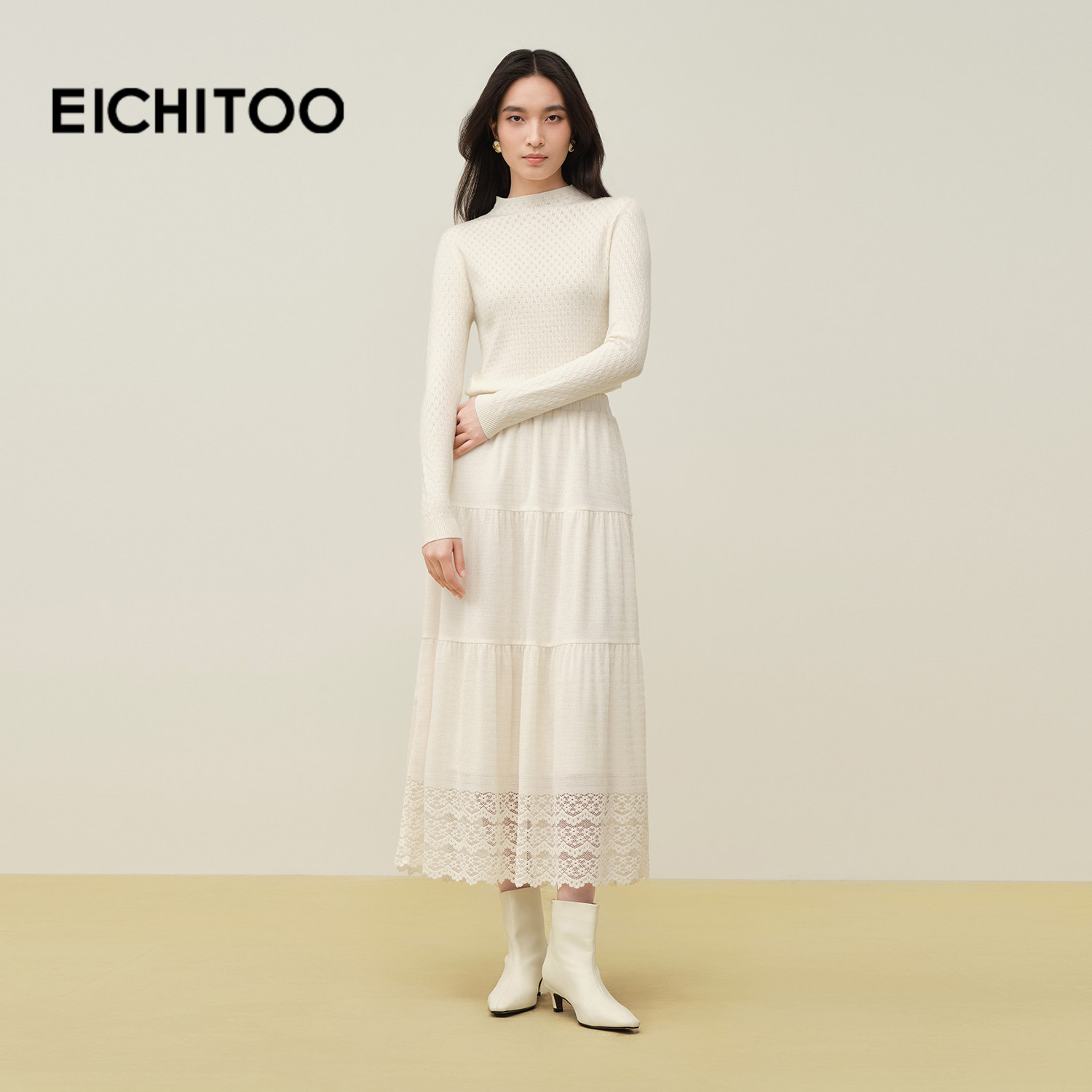 爱居兔纯色亲肤保暖针织打底衫女2025年冬季新款半高领长袖毛衣