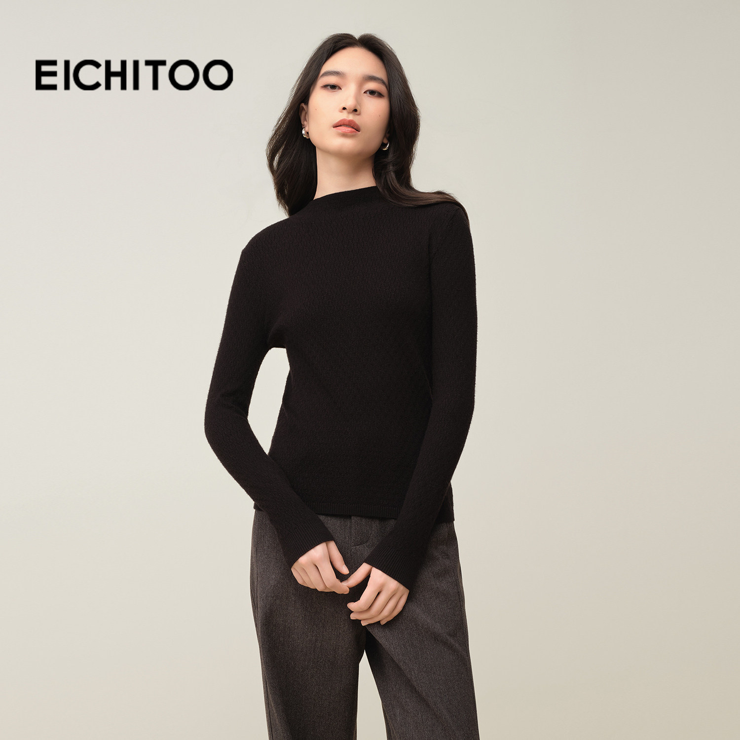 鄂尓半高2025秋冬新款安迪绒毛衣半高领套头衫洋气百搭款
