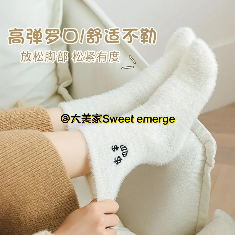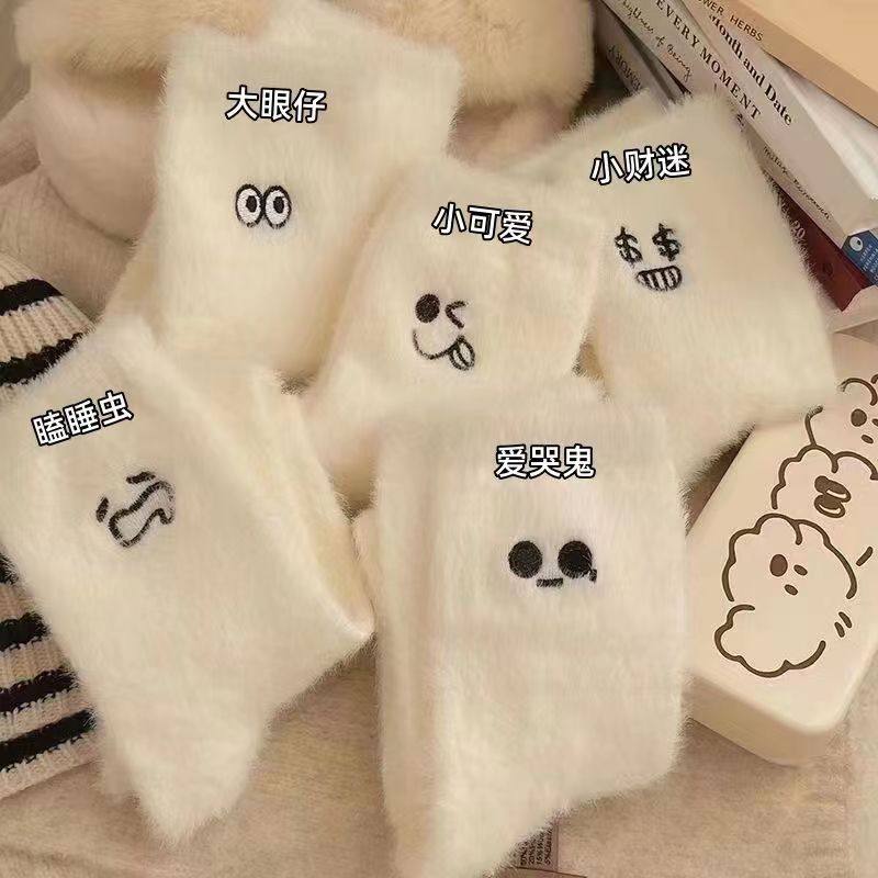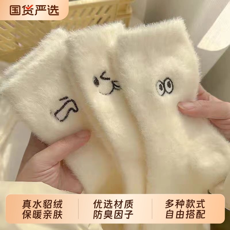 水貂绒袜子女秋冬季加厚保暖毛绒绒月子袜可爱冬天毛绒睡眠袜防臭