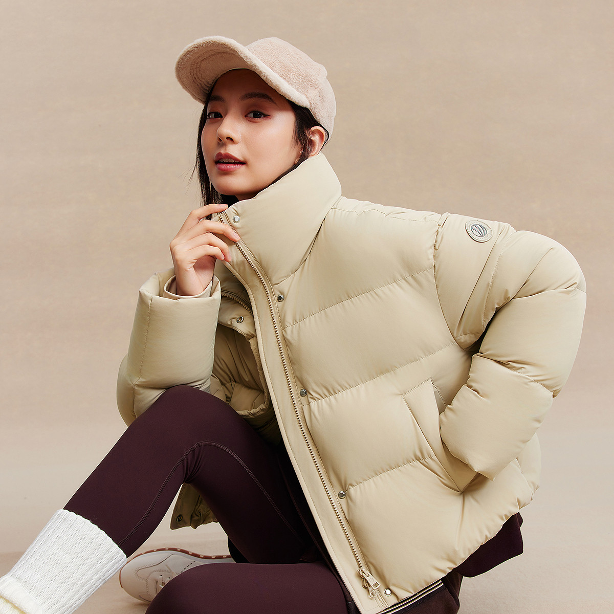 【鞠婧祎同款】鸭鸭2025年冬新款百搭短款女士纯色立领羽绒服外套