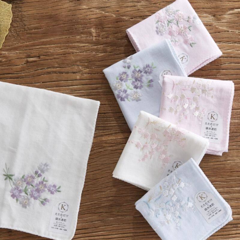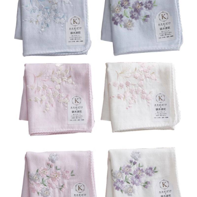 【酷帕铃兰海棠】日本刺绣女士手帕全棉双层精纱柔软棉布手绢吸汗