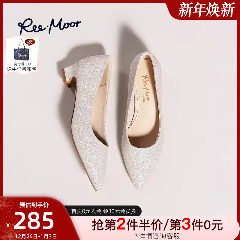 REEMOOR睿慕2025秋季新款女粗跟仙女风跟鞋浅口单鞋气质尖头女鞋