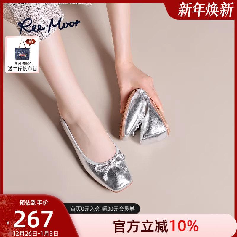 REEMOOR睿慕2025年秋季新款舒适软底蛋卷鞋浅口平底银色单鞋女