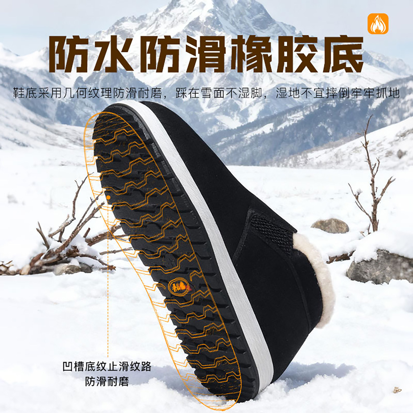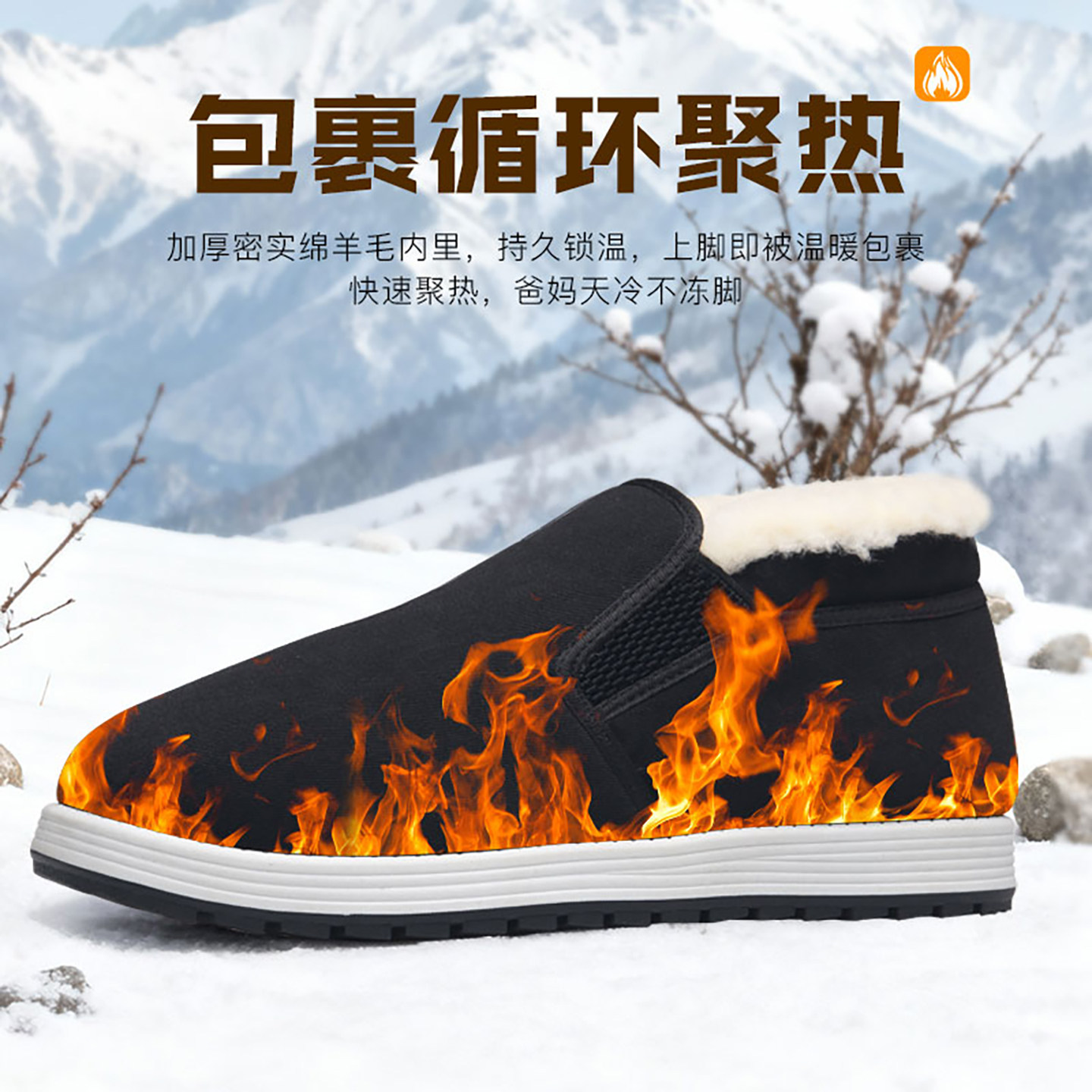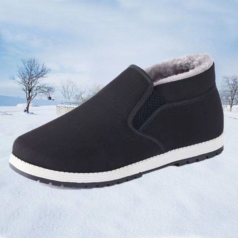 冬季老北京布鞋羊毛棉鞋男士中老年保暖防滑防水高帮一脚蹬棉靴男