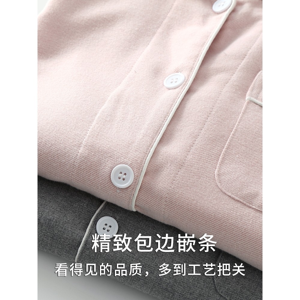 红豆日式纯色睡衣男女春秋冬季加厚纯棉磨毛绒布长袖情侣家居服套