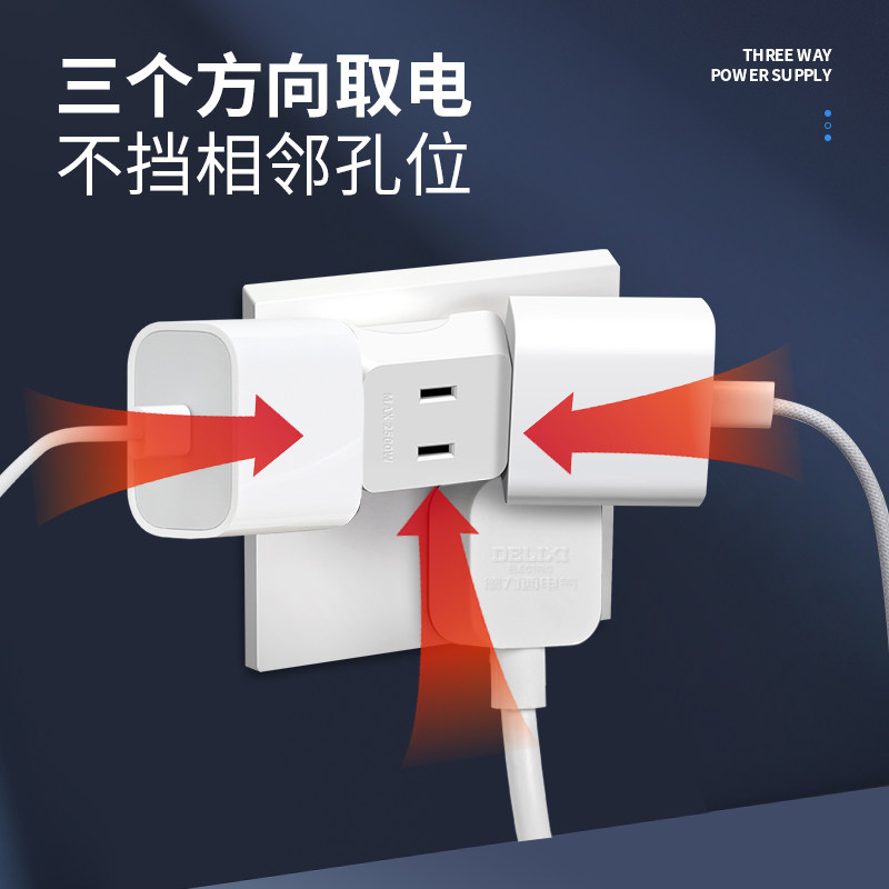 德力西插座转换器一转三二孔电源扩展插多孔功能插线板插排插扩展