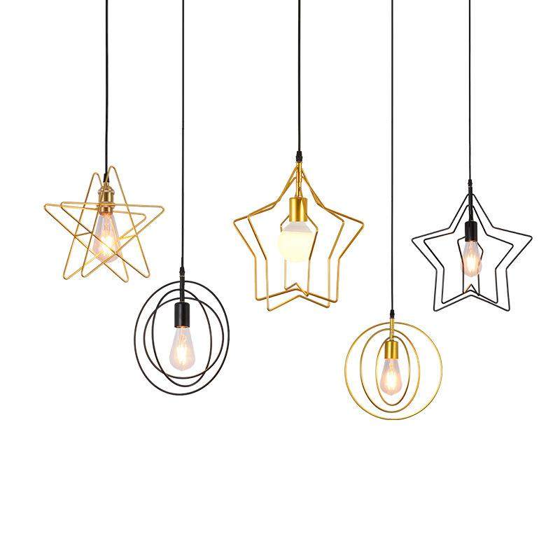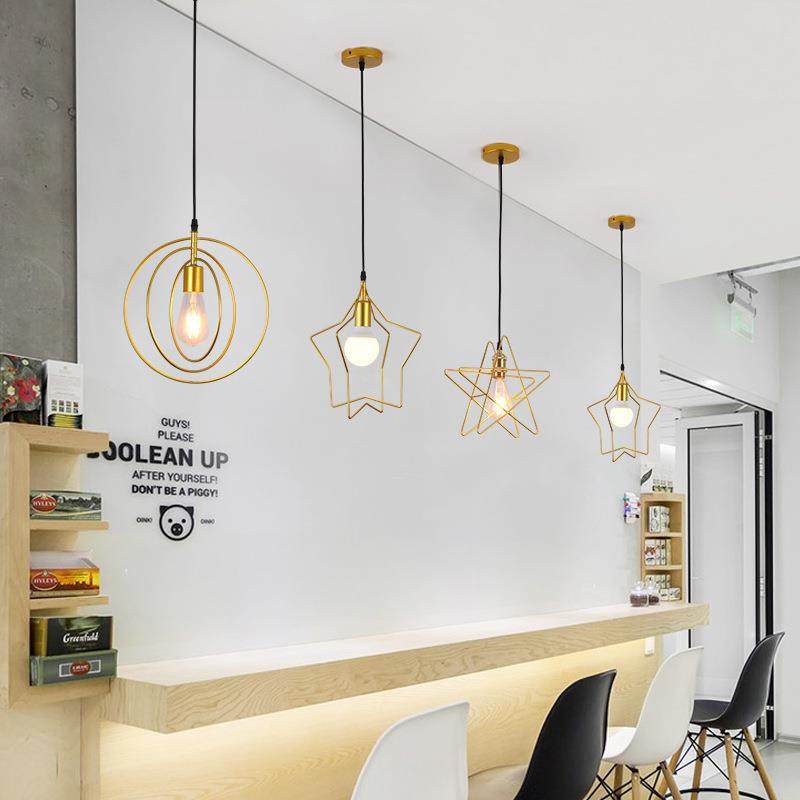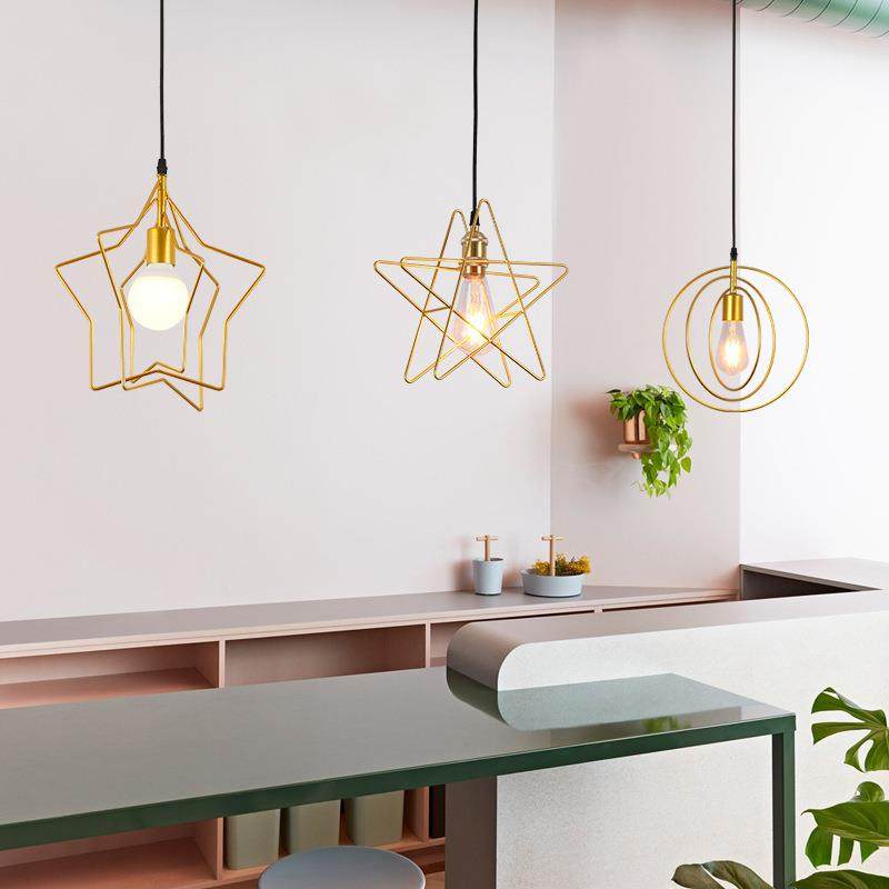 北欧星星吊灯创意后现代金色餐厅吧台卧室玄关过道楼梯五角星吊灯