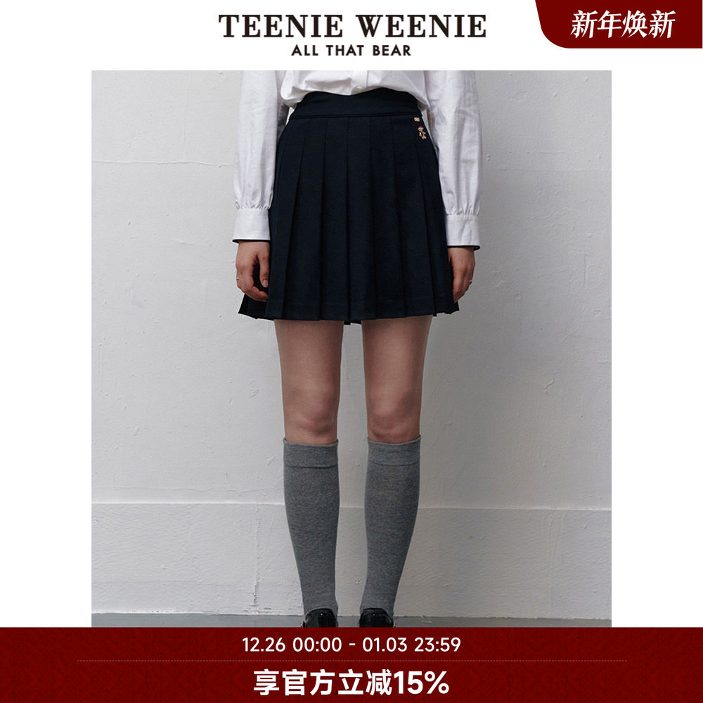 TeenieWeenie小熊奥莱春季高腰学院风格纹百褶裙A字短裙时尚气质