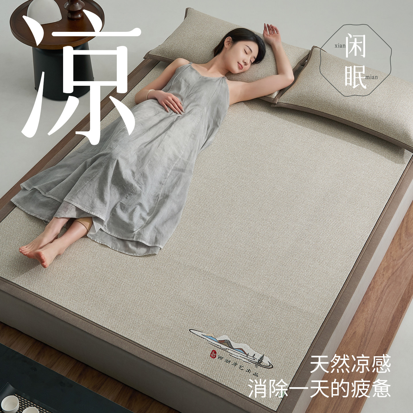 西湖夏季凉席三件套2026新款藤席折叠高端加厚a类抗菌空调软席子