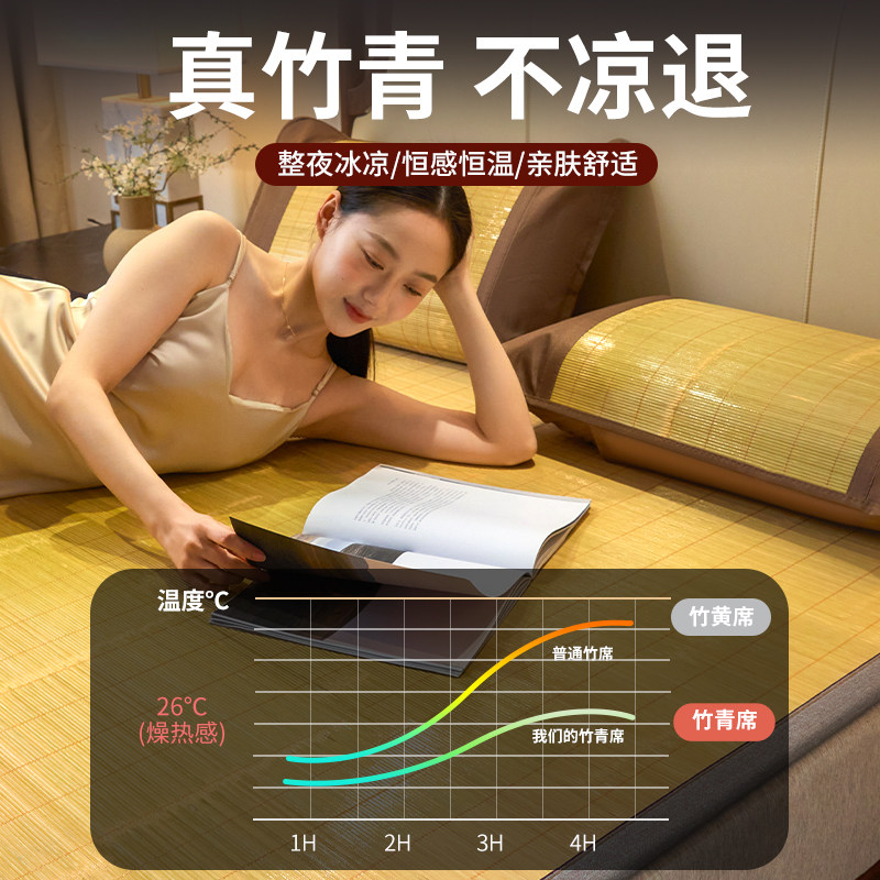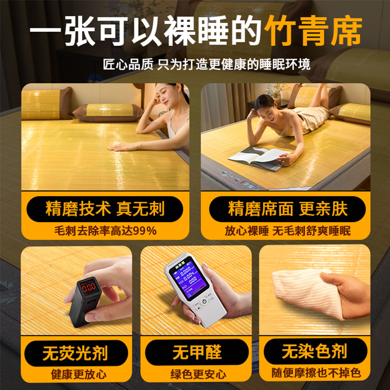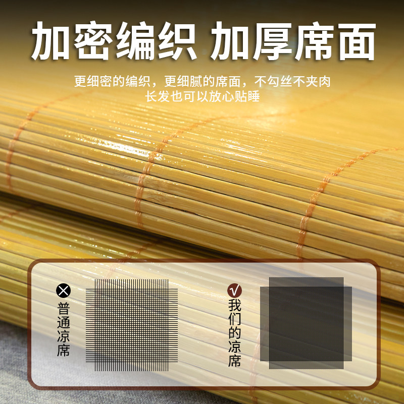 夏季凉席直筒1.8m床双面竹席1.5冰丝1.1不折叠1.3定制1.6竹子定做
