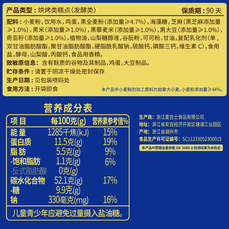 麦吉士五黑谷物吐司无蔗糖代餐零食黑全麦面包手撕早餐550g*2箱