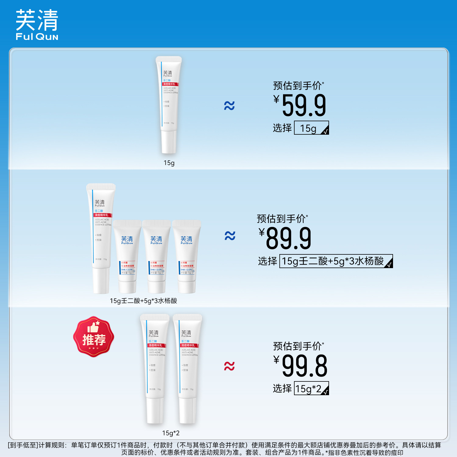 芙清20%壬二酸祛痘精华乳非水杨酸控油淡化祛痘印痘痘闭口粉刺