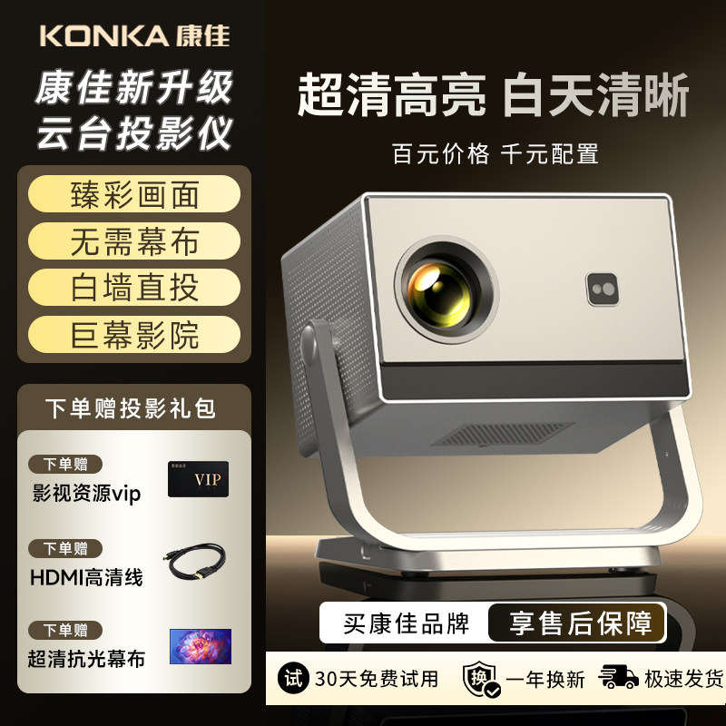 康佳2026新款超高清投影仪卧室小型手机投屏白墙直投【白天清晰】