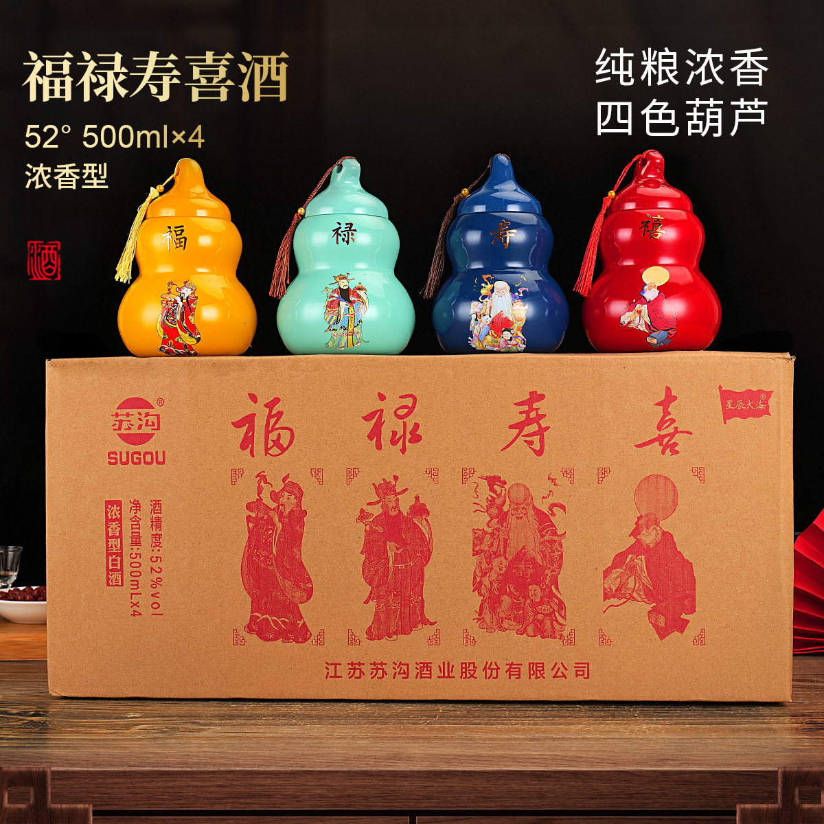 苏沟福禄寿喜白酒送礼四色酒瓶装500ml52度纯粮酒业福酒葫芦喜酒