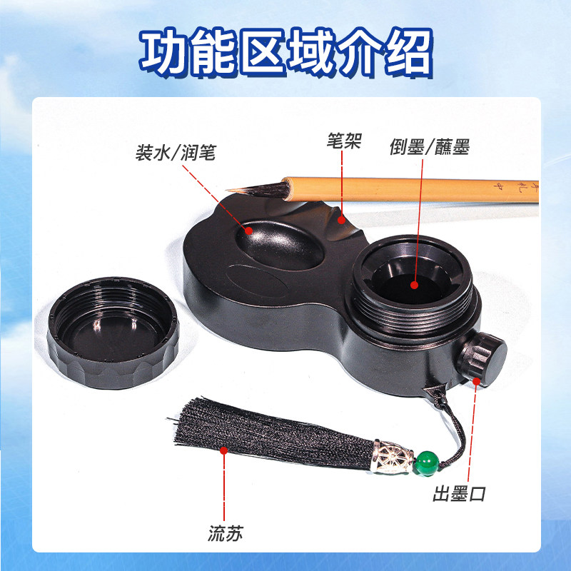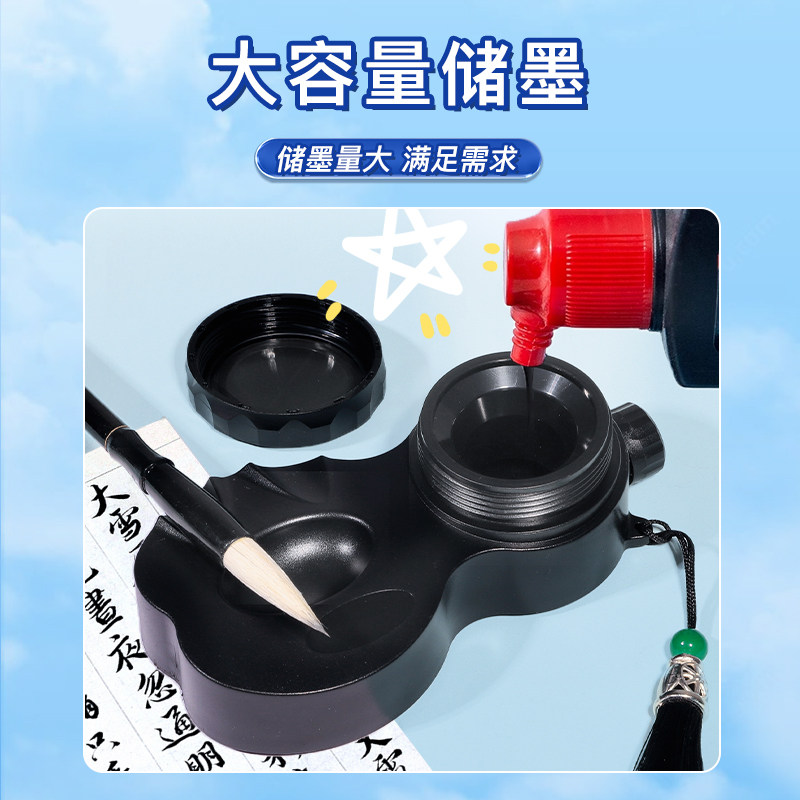 便携式砚台书法毛笔套装墨盒带盖密封防漏防干学生墨水不