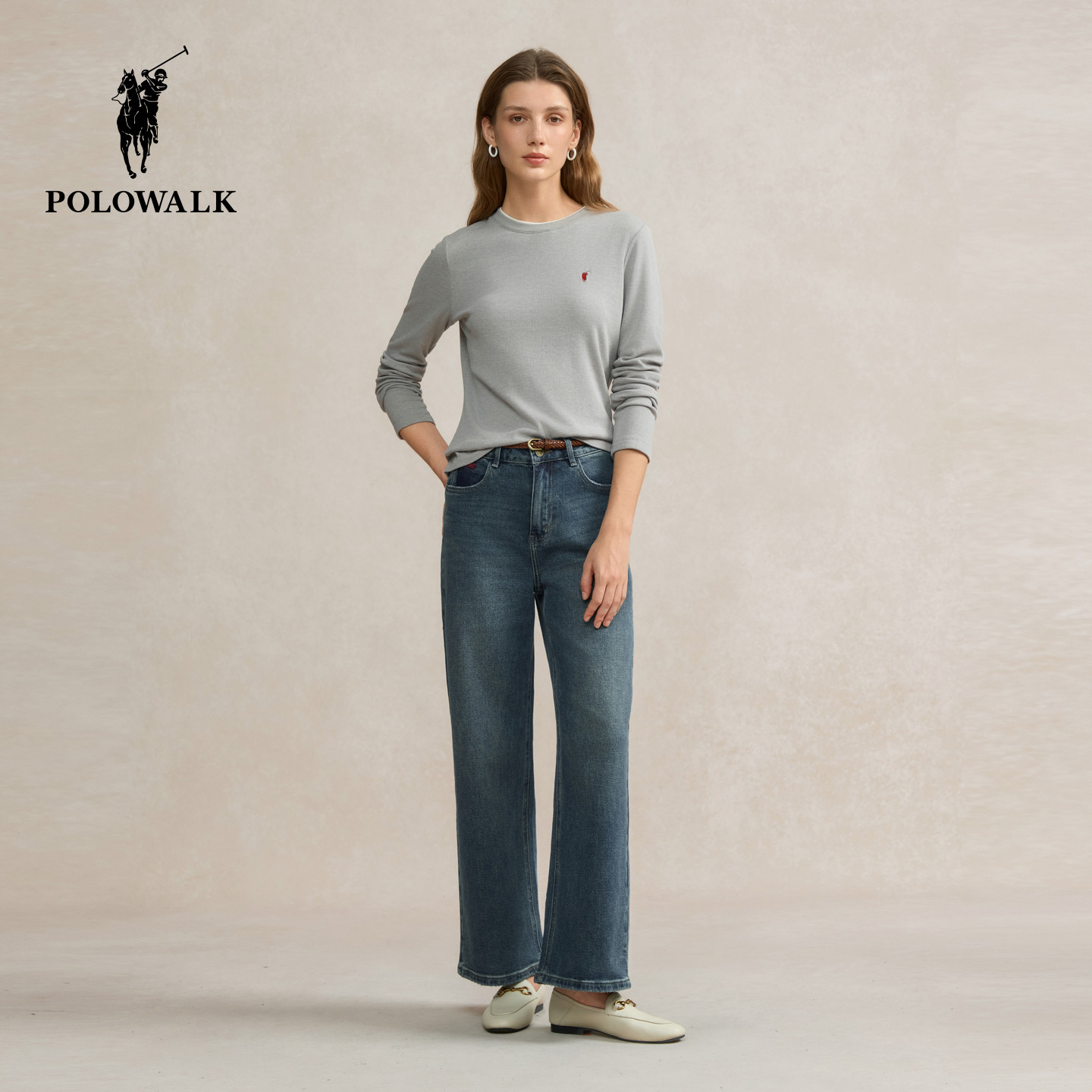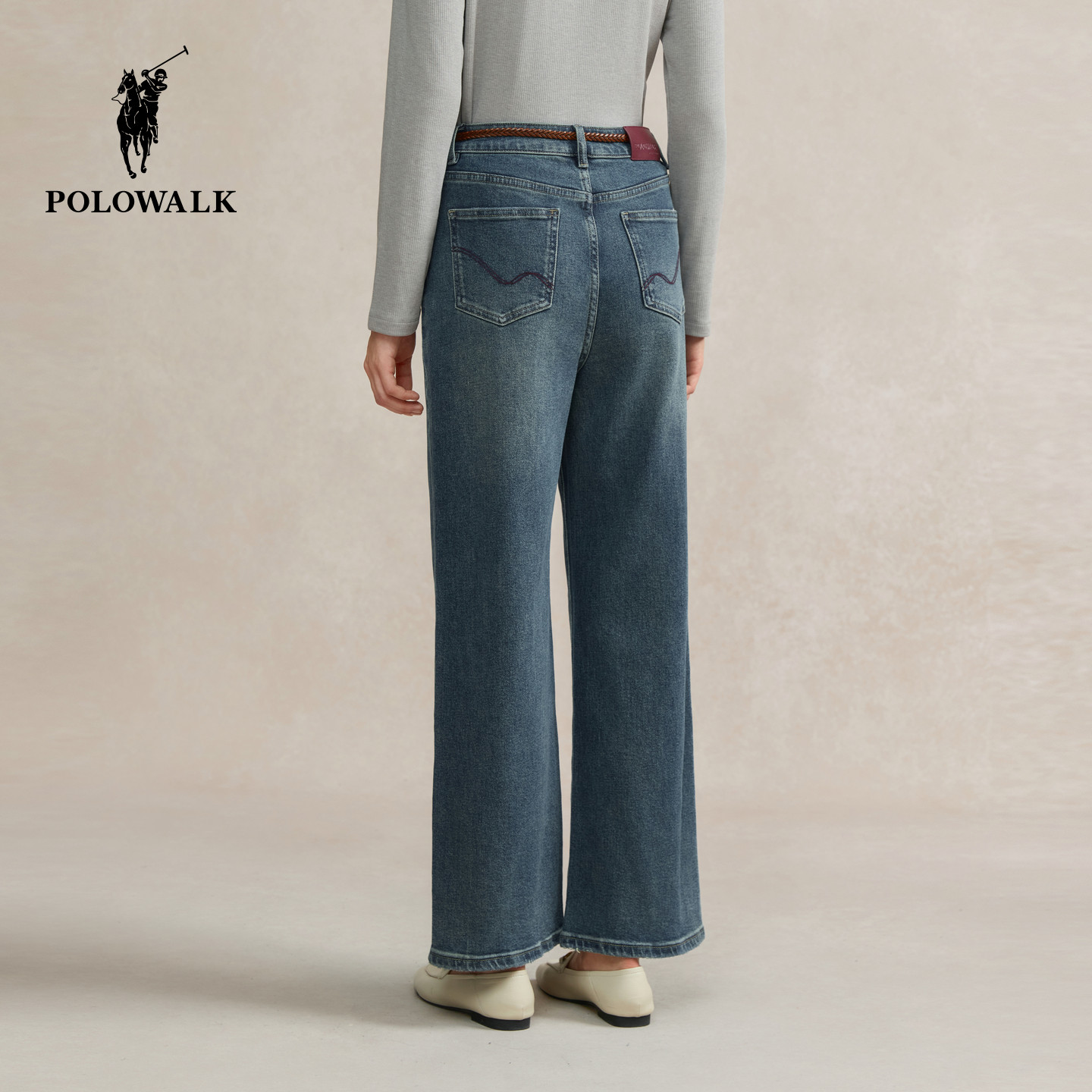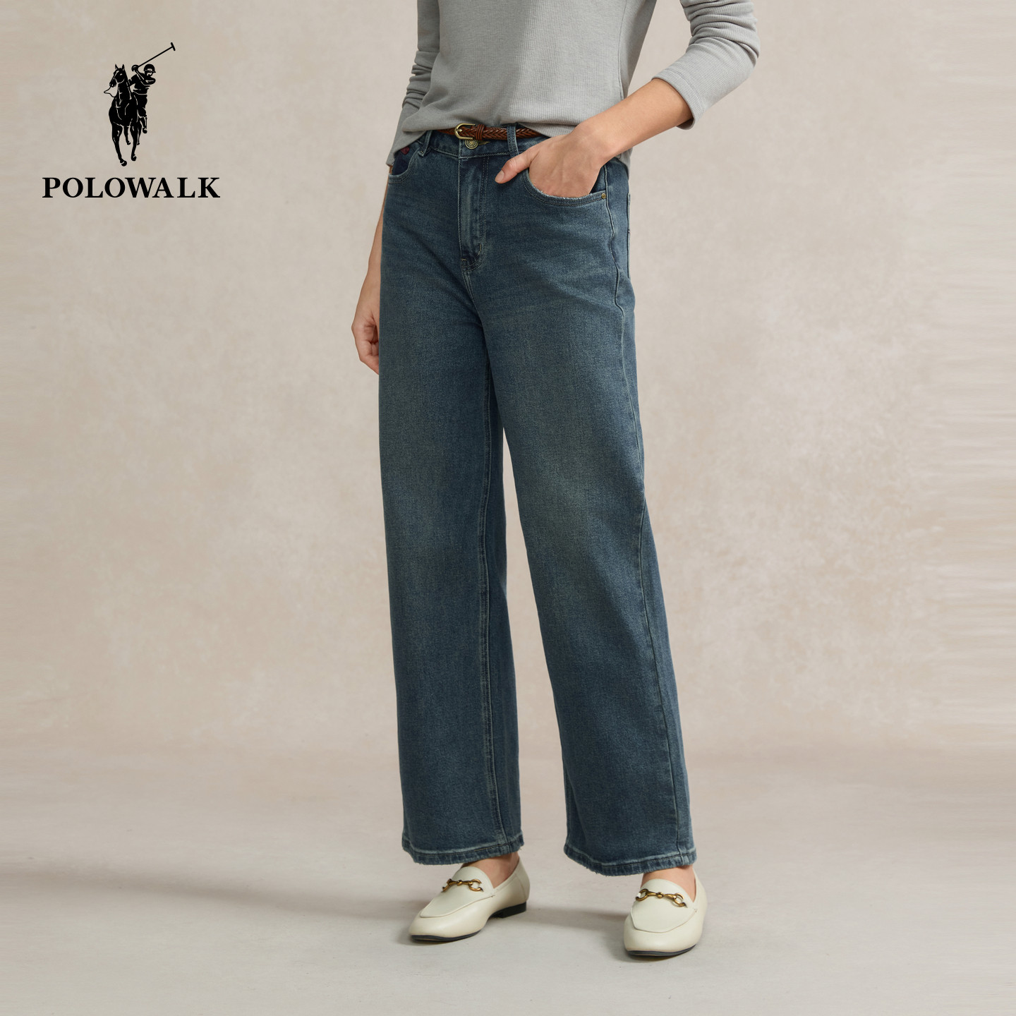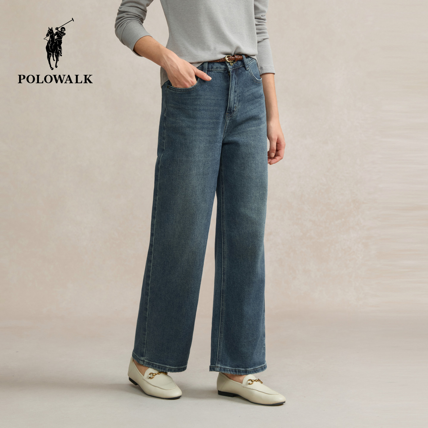 POLOWALK女式牛仔裤2025秋冬裤新品直筒通勤休闲牛仔阔腿长裤女款