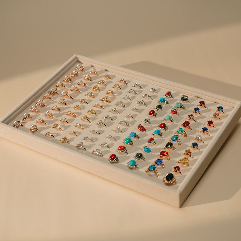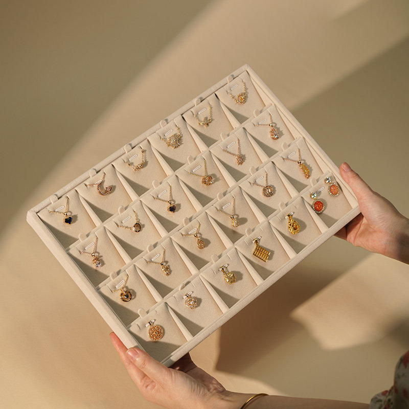 绒布首饰托盘项链戒指手镯耳环收纳盘珠宝饰品展示道具摆摊看货盘