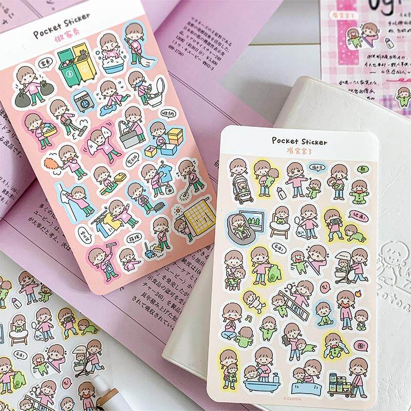【阿卓口袋贴纸】卓大王好烦学习奶茶家务育儿生病手帐贴纸日常