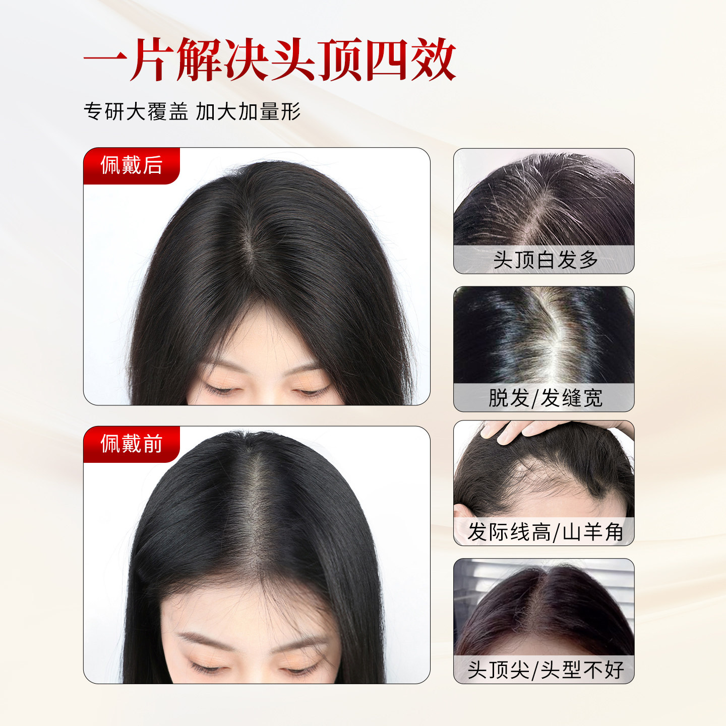大面积*遮全头 全真发假发片女头顶增发量遮白发蓬松高颅顶补发片
