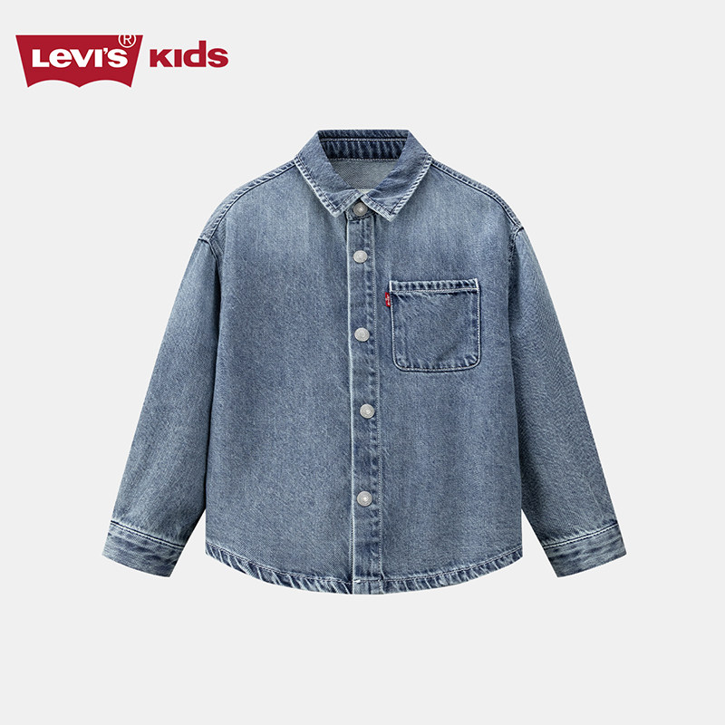 Levis李维斯儿童牛仔衬衫2026春装新款经典水洗男童女童衬衣童装