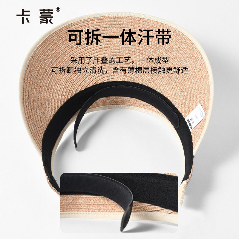 卡蒙防晒帽编织草帽女夏日防紫外线蛋卷空顶帽可折叠发箍遮阳帽