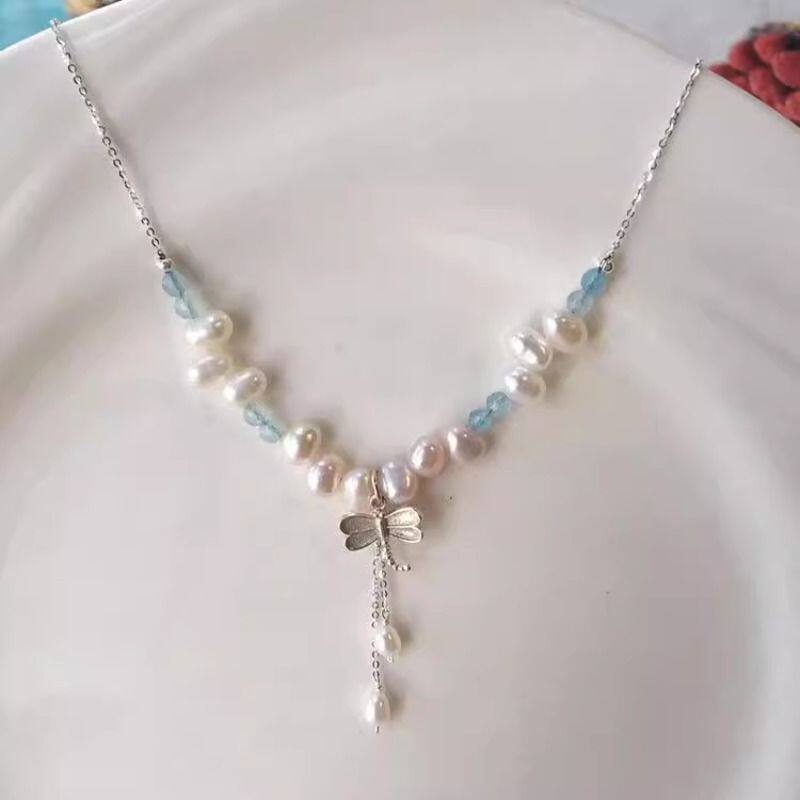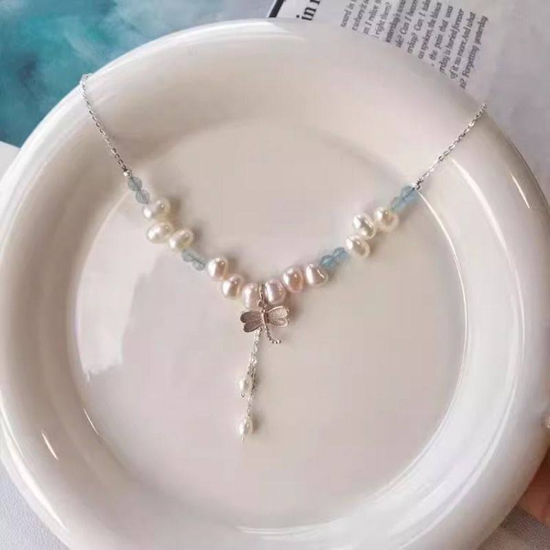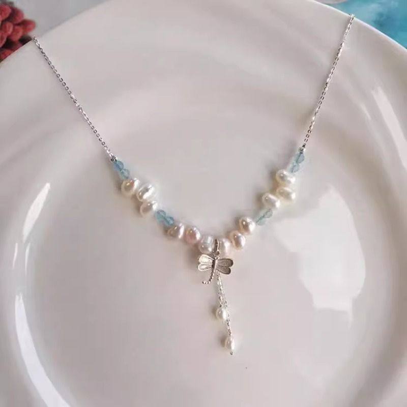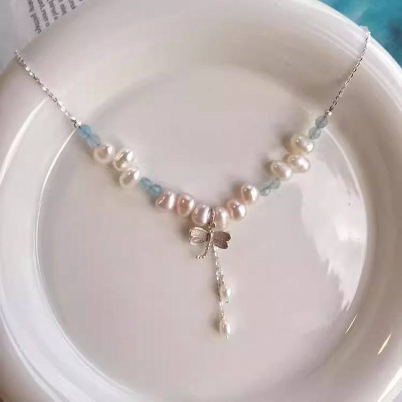 轻舞蜻蜓~复古巴洛克珍珠吊坠项链女2024夏新款小众vintage锁骨链