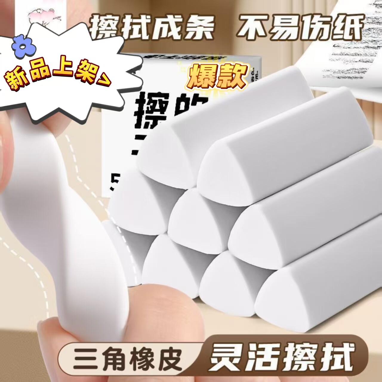 三角橡皮擦小学生专用无屑超干净聚屑成线儿童素描美术无毒可爱三角形素描画美术橡皮儿童
