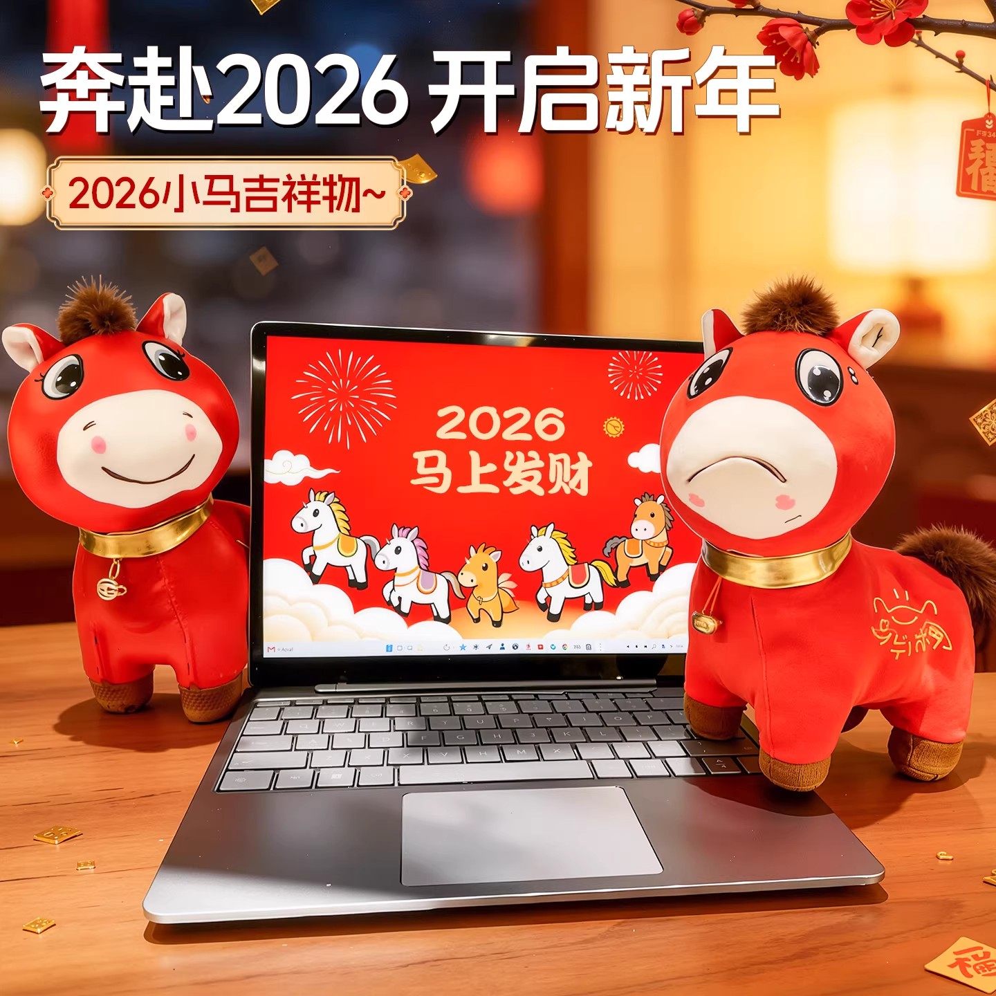 2026马年吉祥物公仔小马毛绒玩具可爱新年布娃娃公司礼品马上有钱