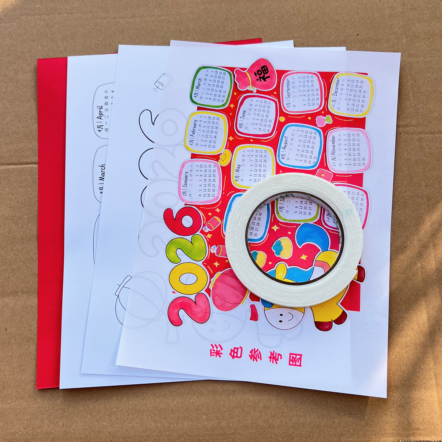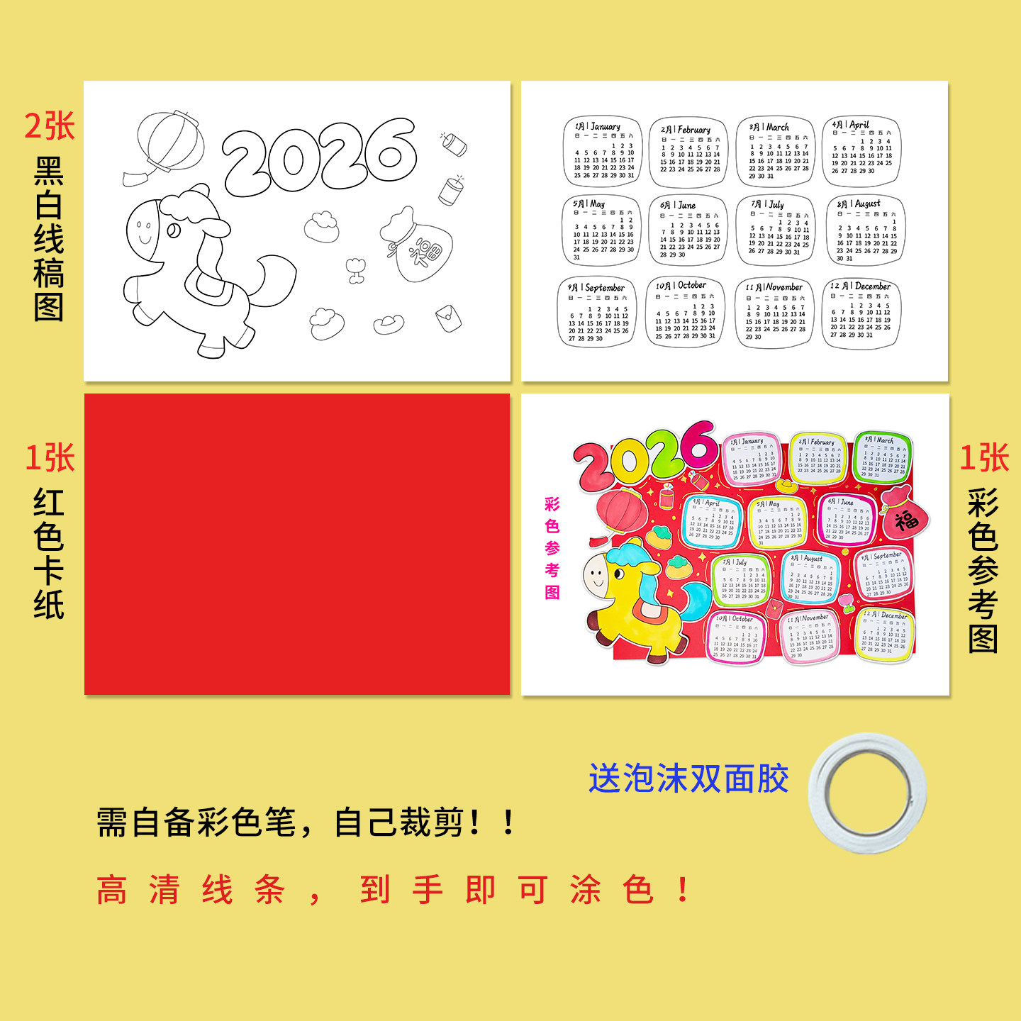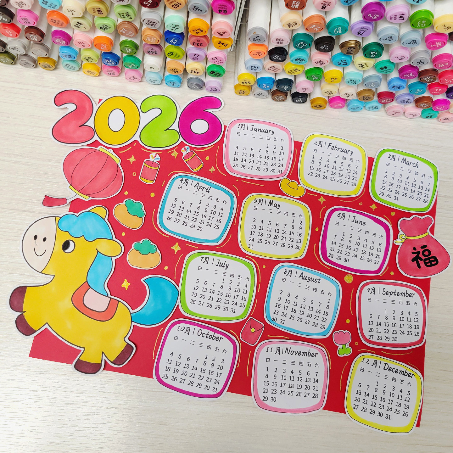 2026马年手工作业立体日历DIY小报学生新年年历涂色半成品材料包