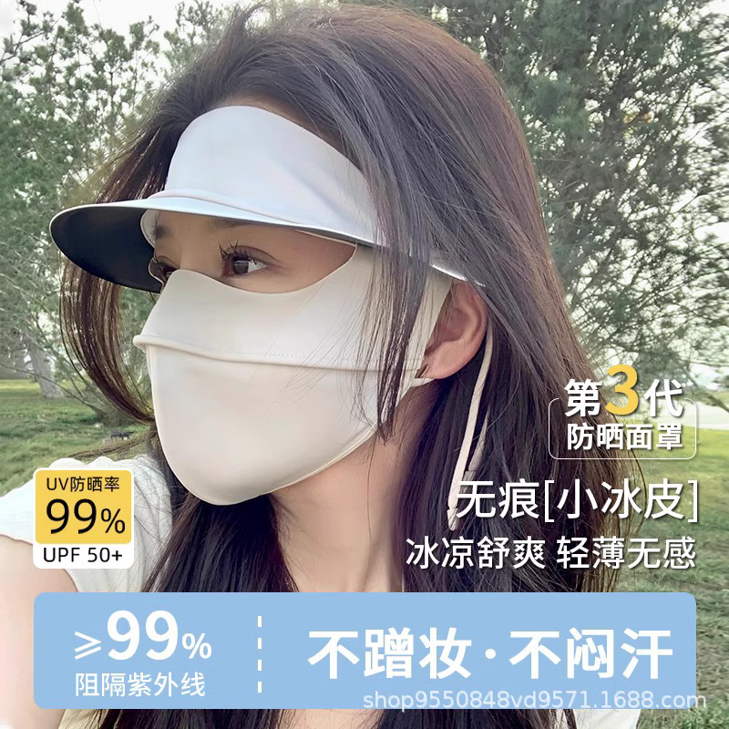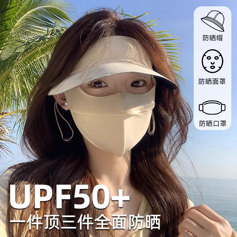 防晒面罩女冰丝夏季2026新款口罩全脸防紫外线帽檐遮阳面部脸基尼