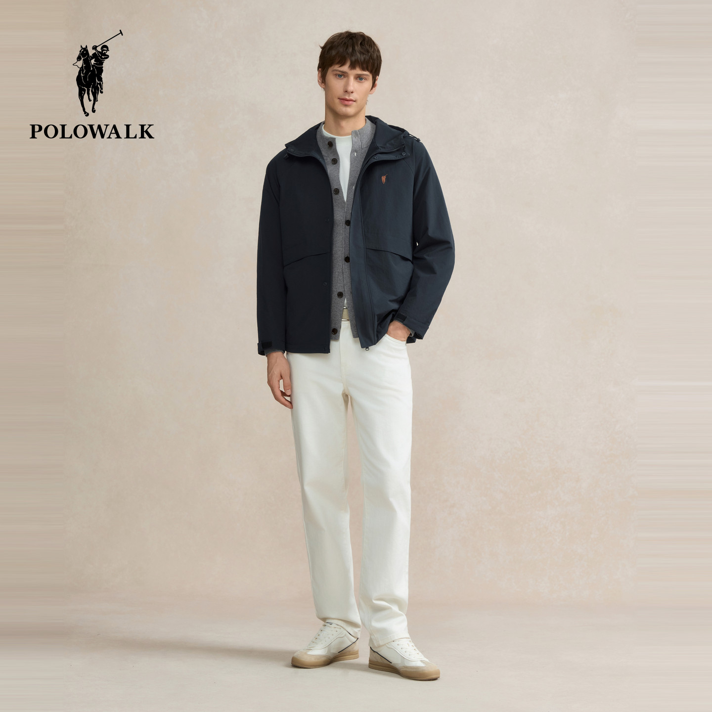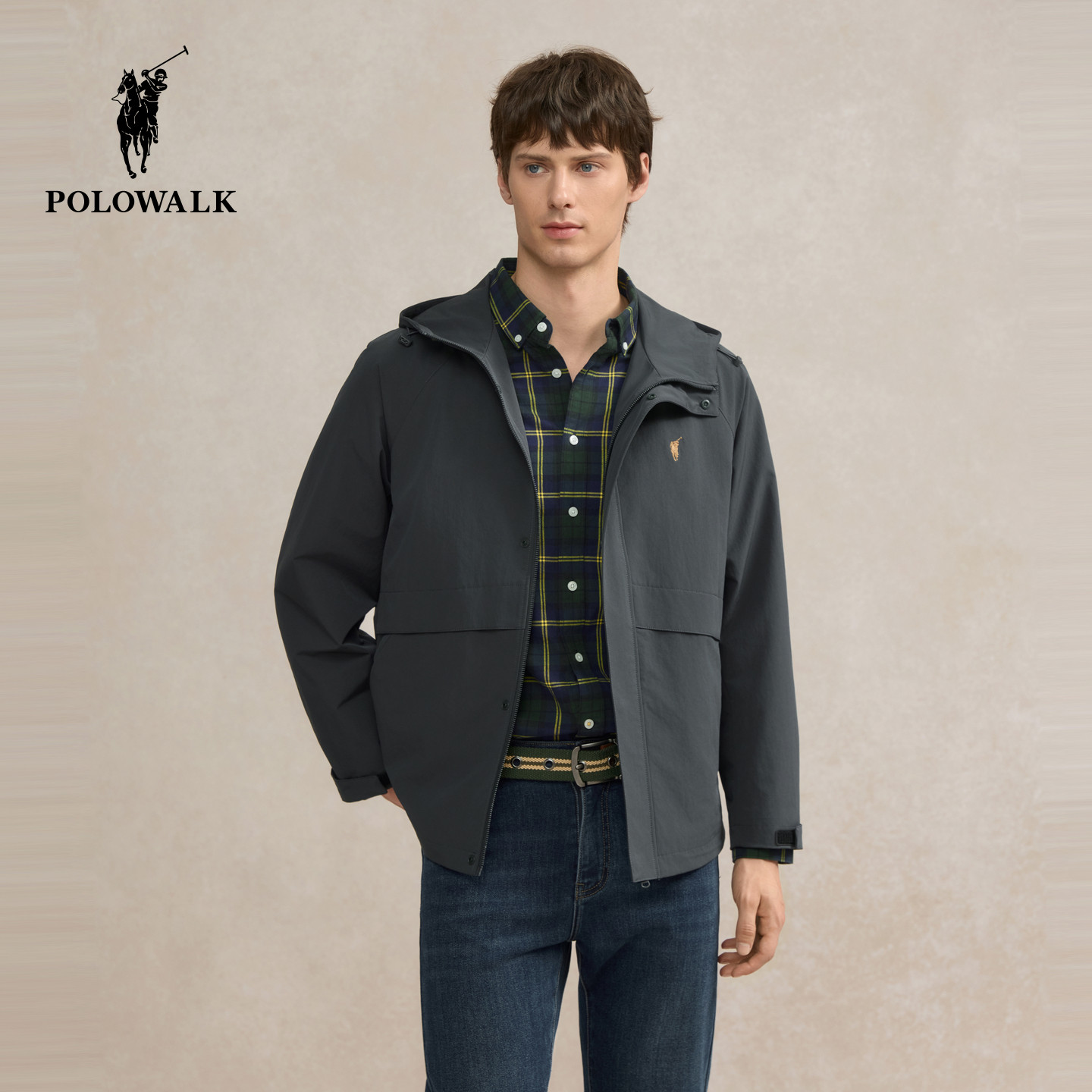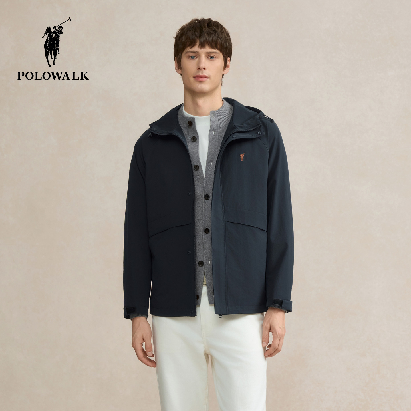POLOWALK男式夹克外套2025秋冬新品简系百搭休闲连帽夹克上衣男