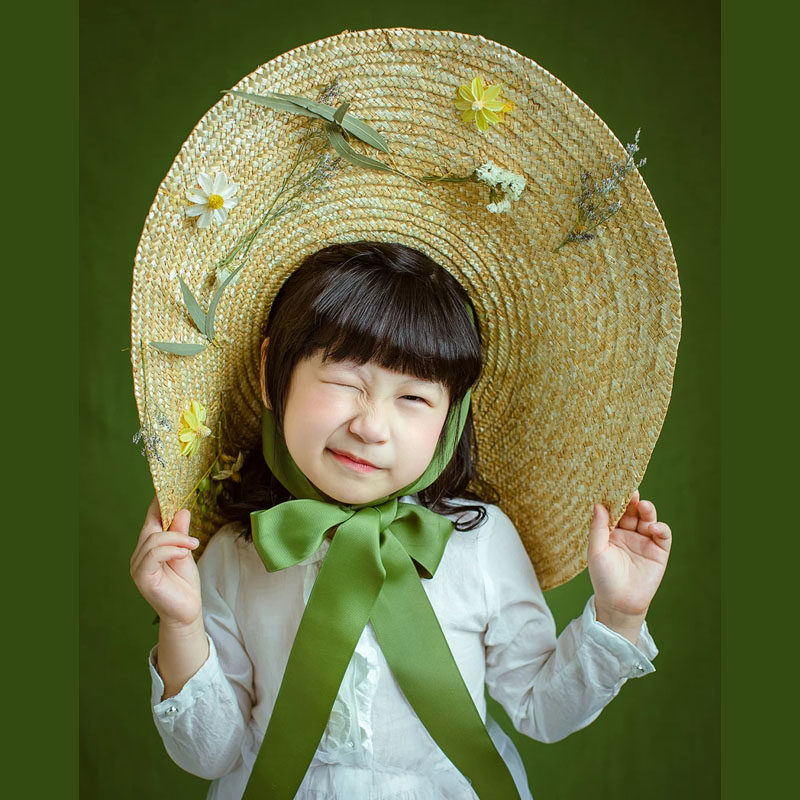影楼婚纱摄影道具儿童复古旅拍时尚超大帽子大檐平顶沙滩丝带草帽