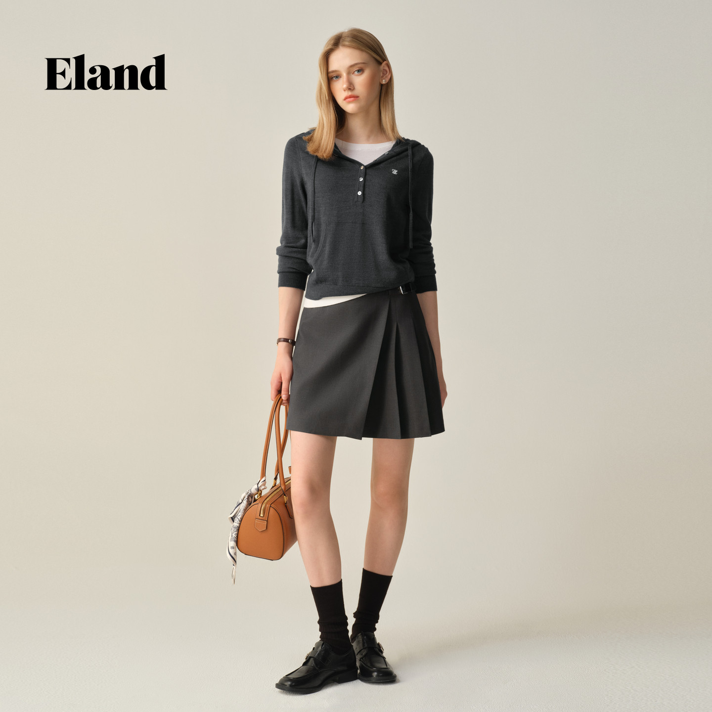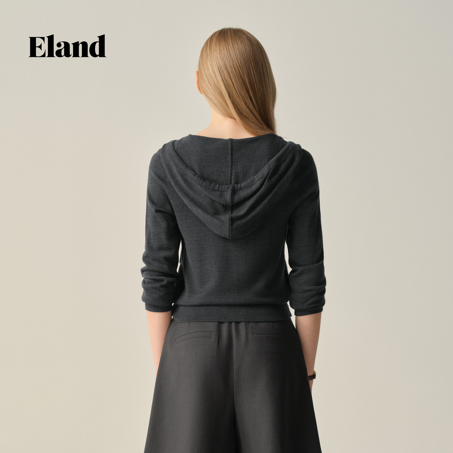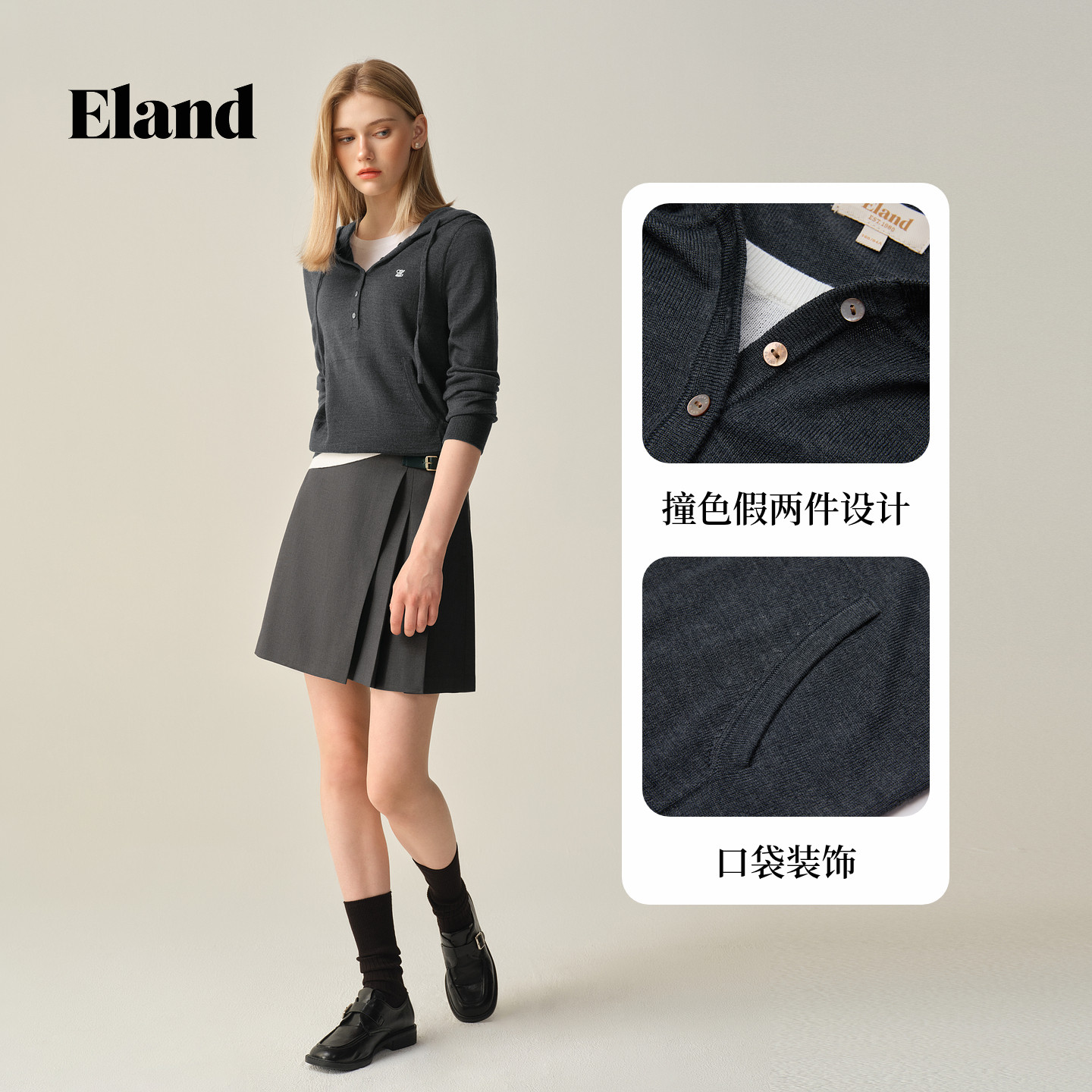 【可机洗羊毛】Eland衣恋毛衣女假两件连帽针织衫冬季新款