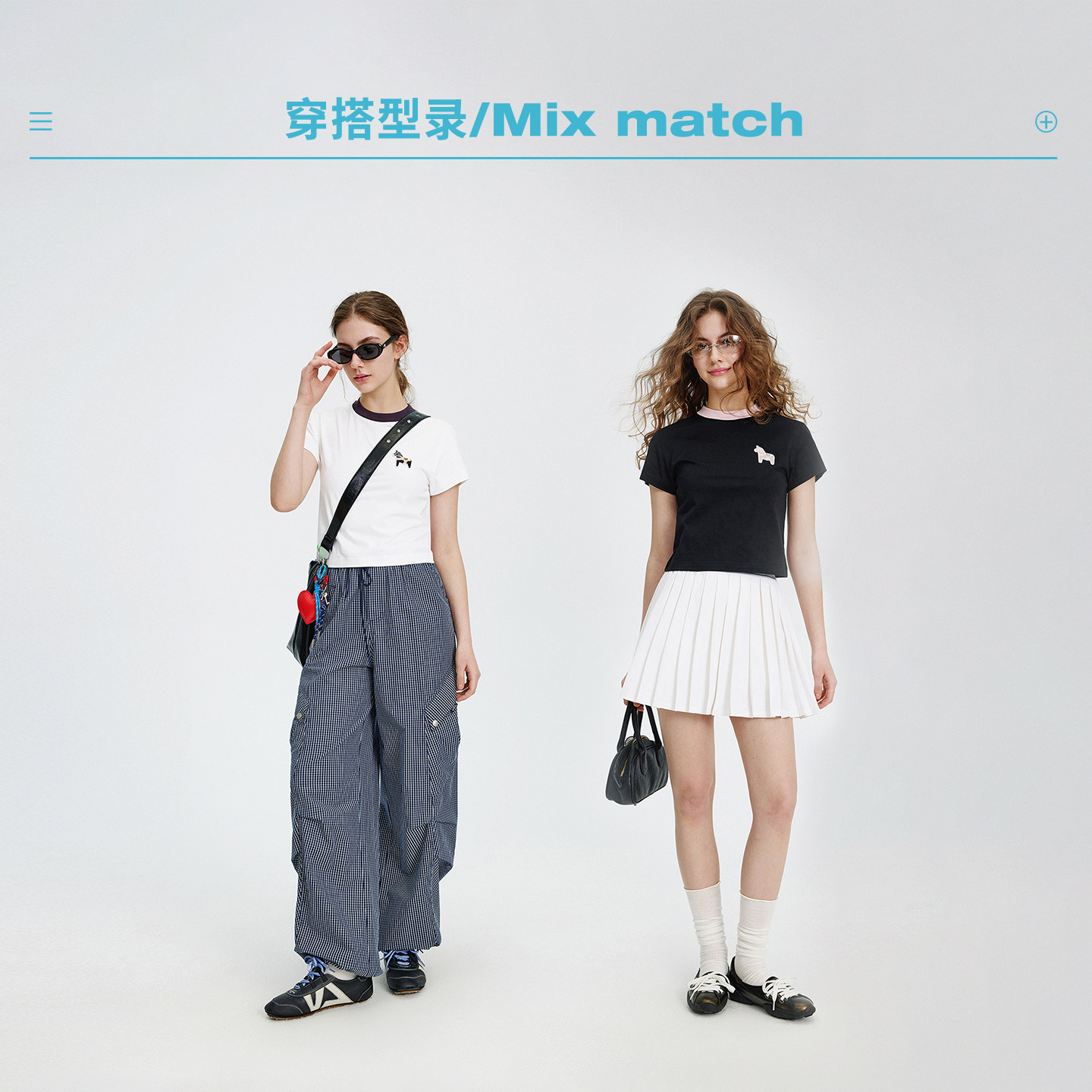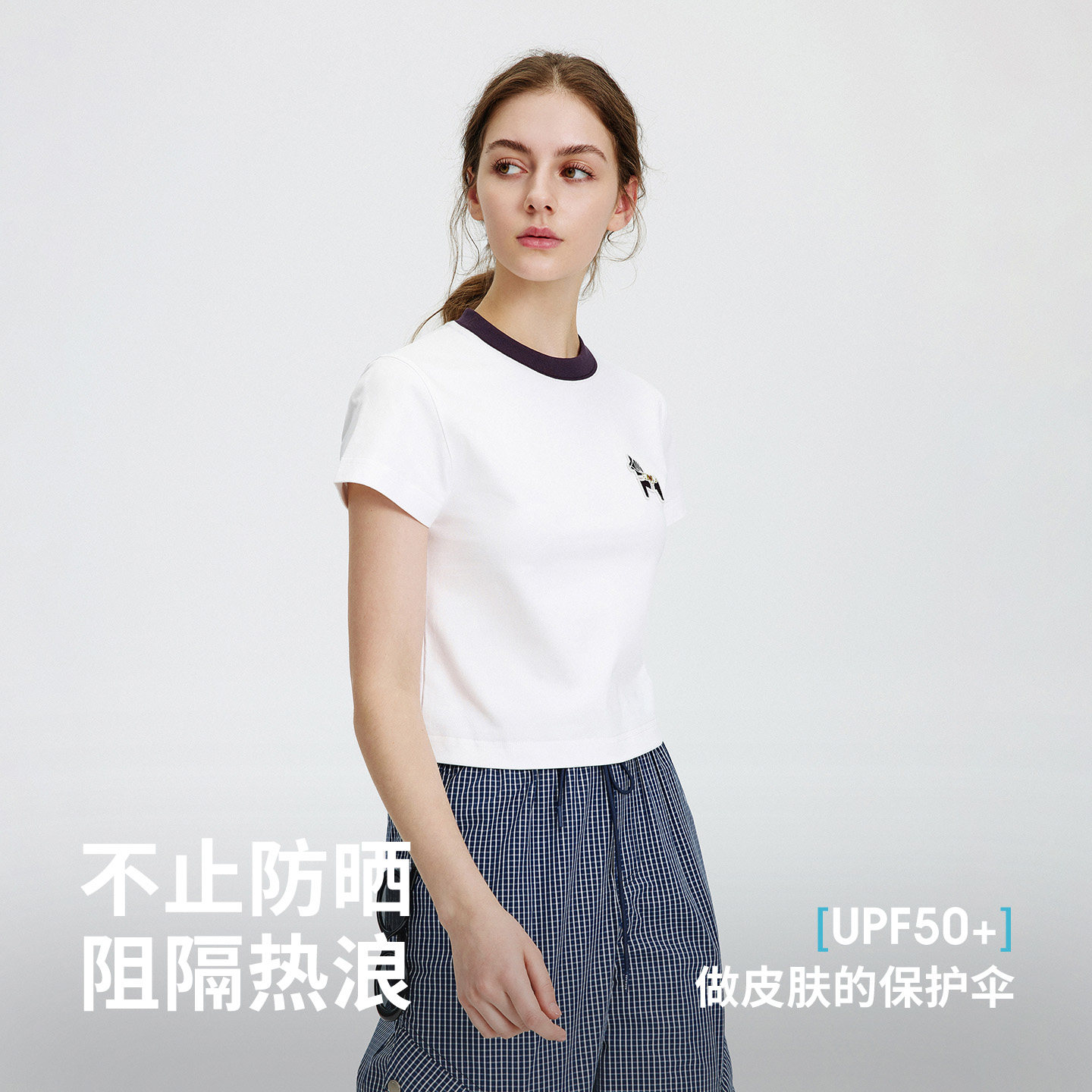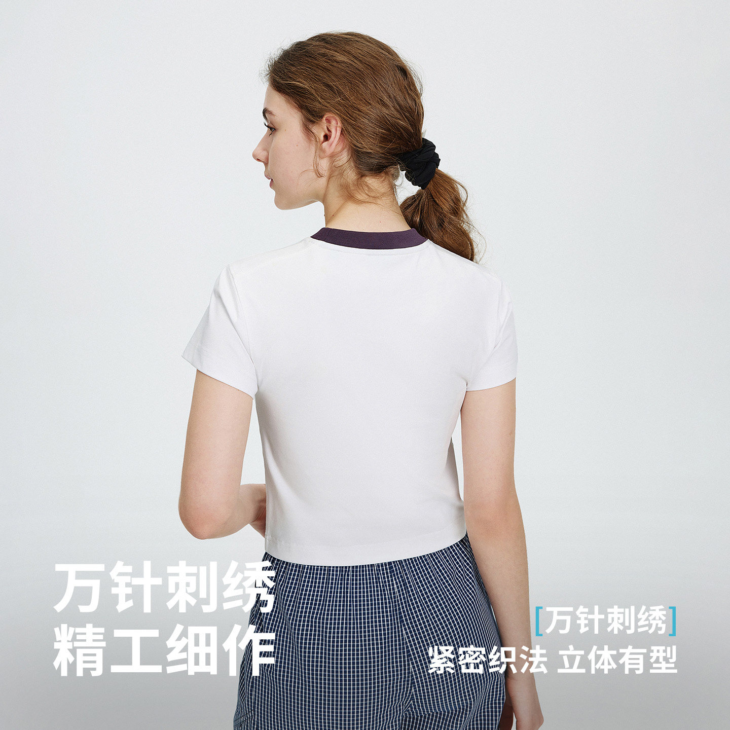 凉感T森马短袖T恤女短款修身正肩收腰2025夏新款上衣百搭白色体恤