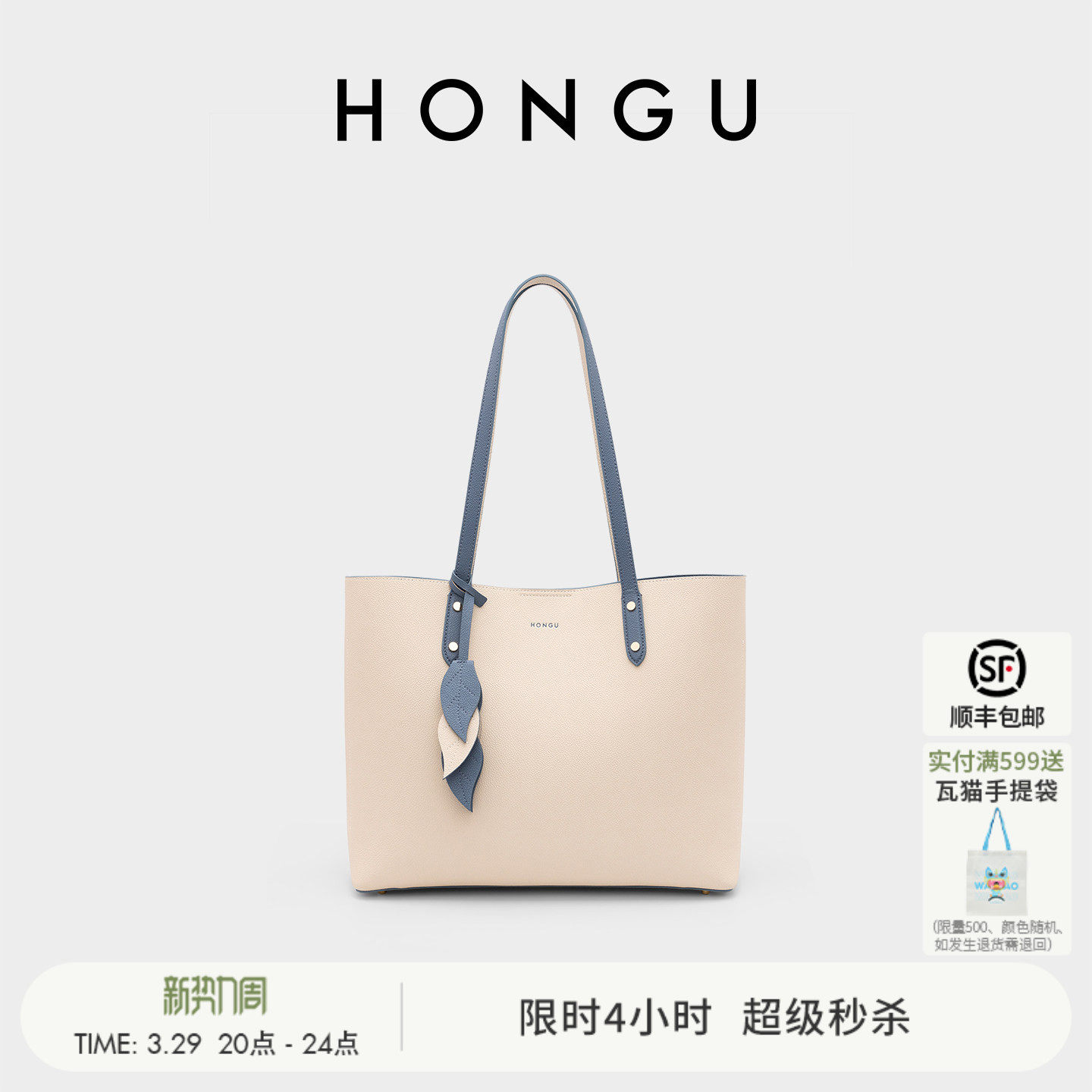 红谷包包新款牛皮单肩手提包时尚通勤大容量妈妈托特包女士包大包