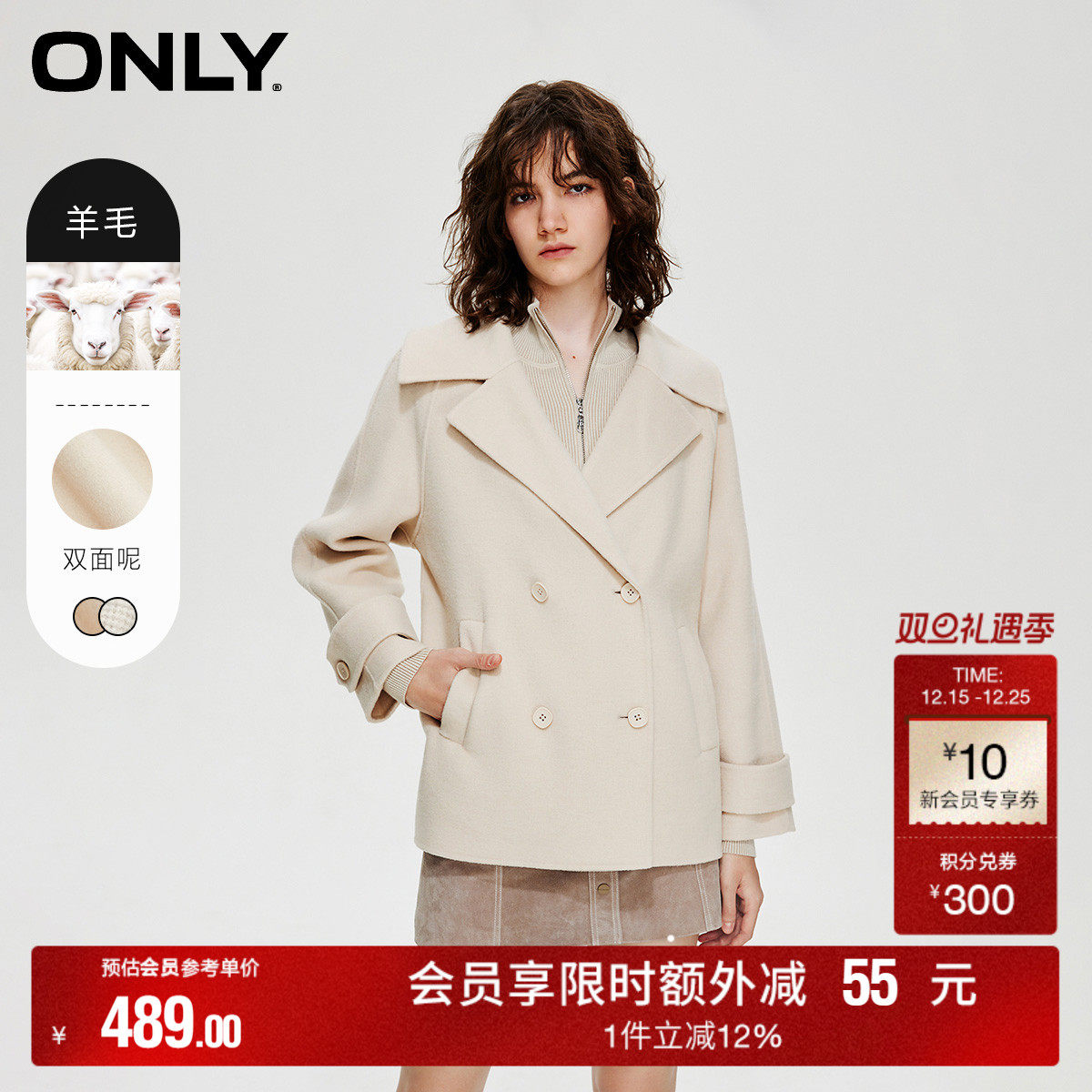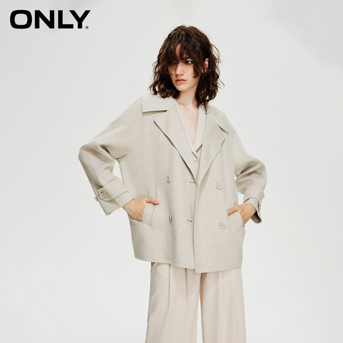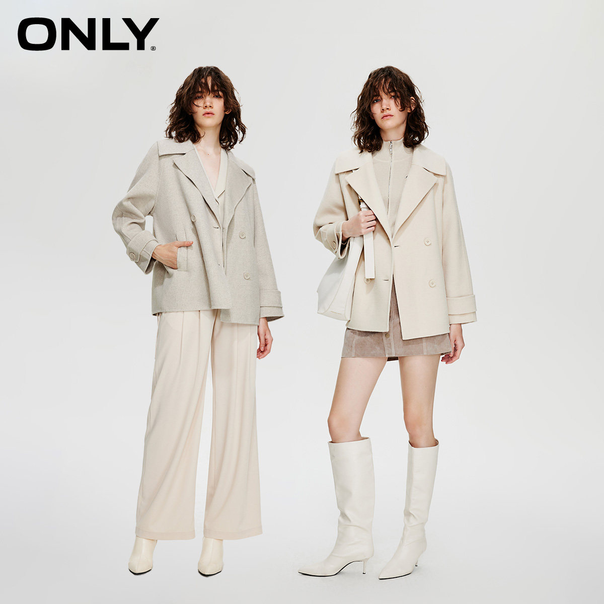 【ONLY奥莱】冬季时尚双面呢绵羊毛宽松毛呢大衣女
