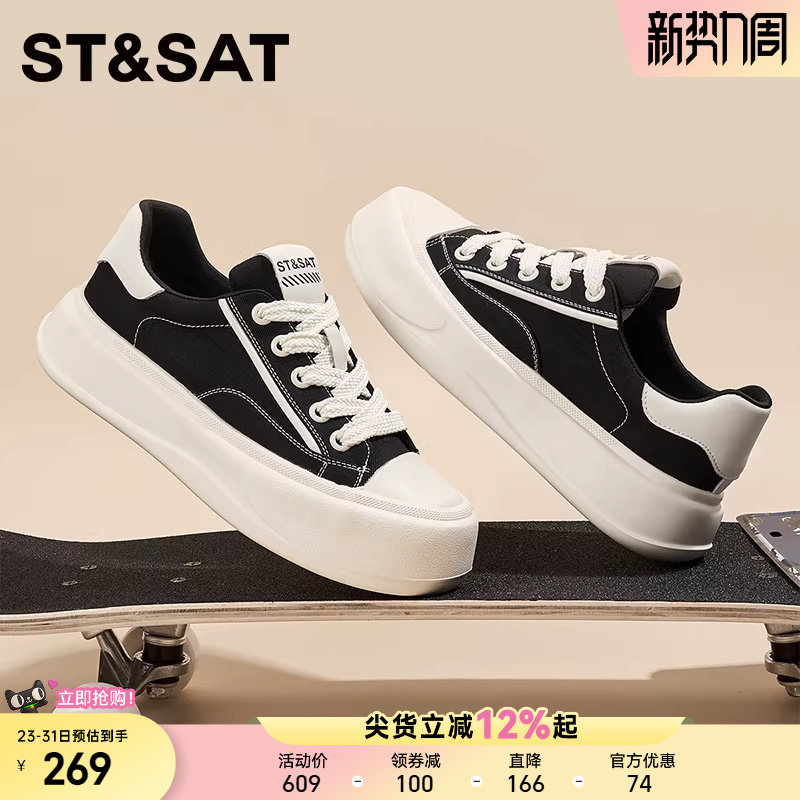 星期六厚底帆布鞋男款2025新款夏季透气休闲板鞋百搭运动小白鞋子