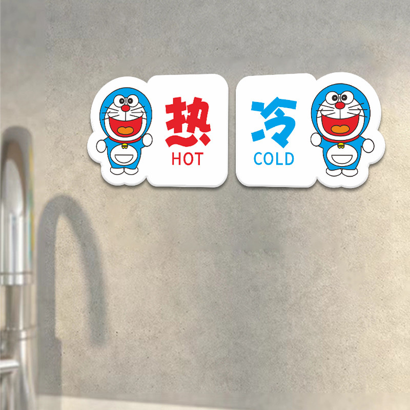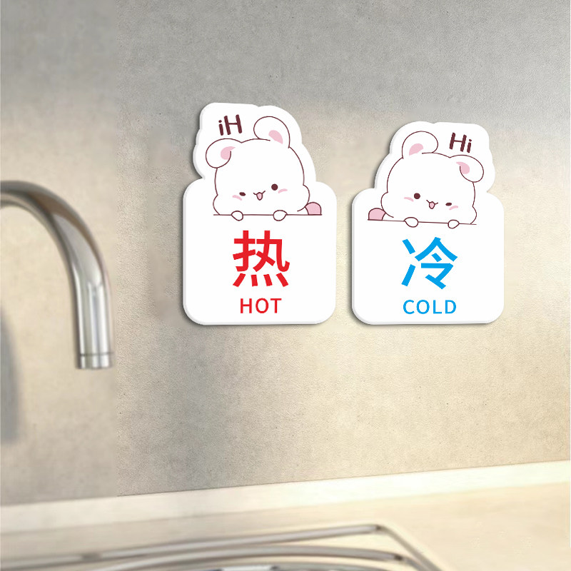 冷热水标识贴动漫卡通亚克力卫生间洗手间冷水热水贴酒店宾馆浴室水龙头淋浴房标贴标志牌温馨提示牌墙贴定制