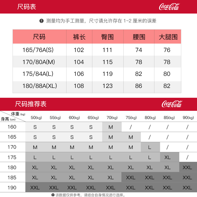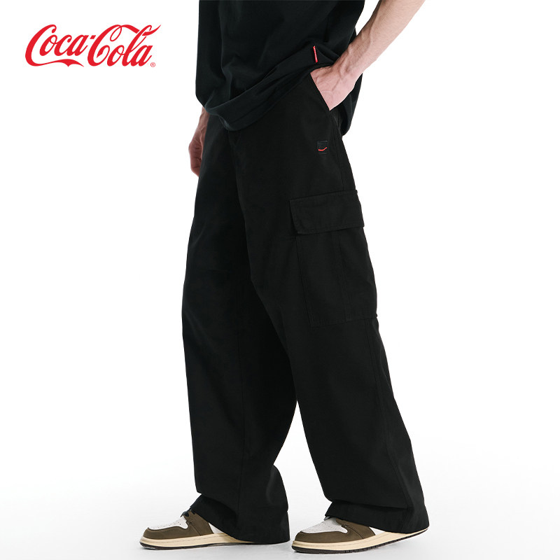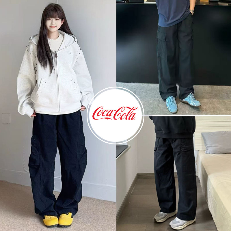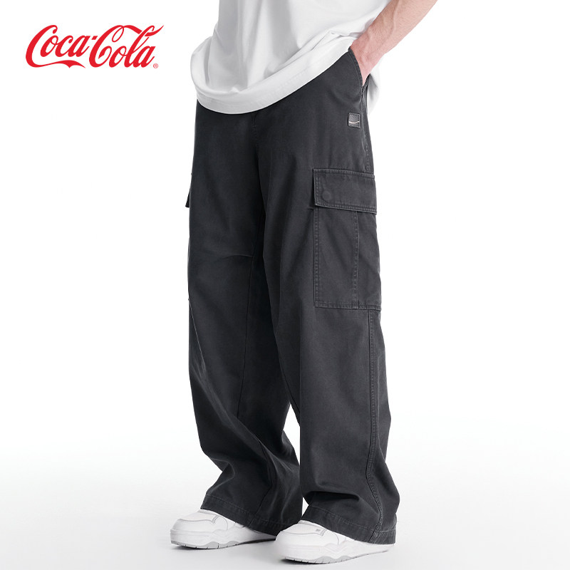 Coca-Cola/可口可乐 洗褪做旧直筒宽松休闲多口袋工装裤 男女同款