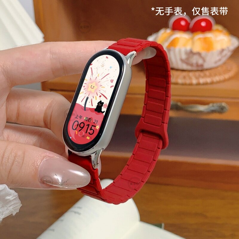 马年新年款适用小米手环10表带酒红色硅胶磁吸9代陶瓷版马上有钱8NFC版智能创意高7/6/5替换腕带秋冬2026女生