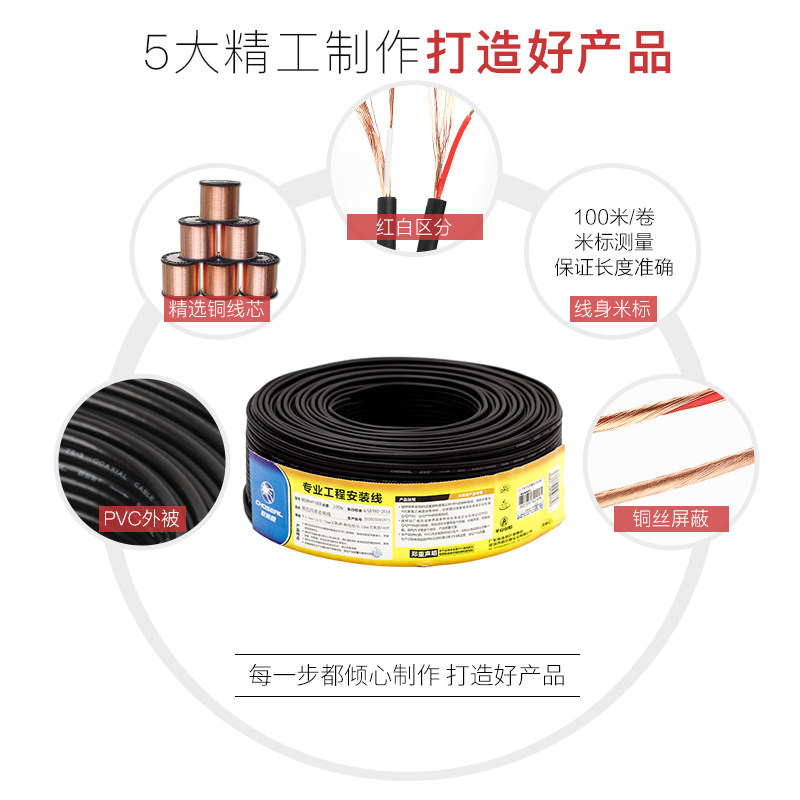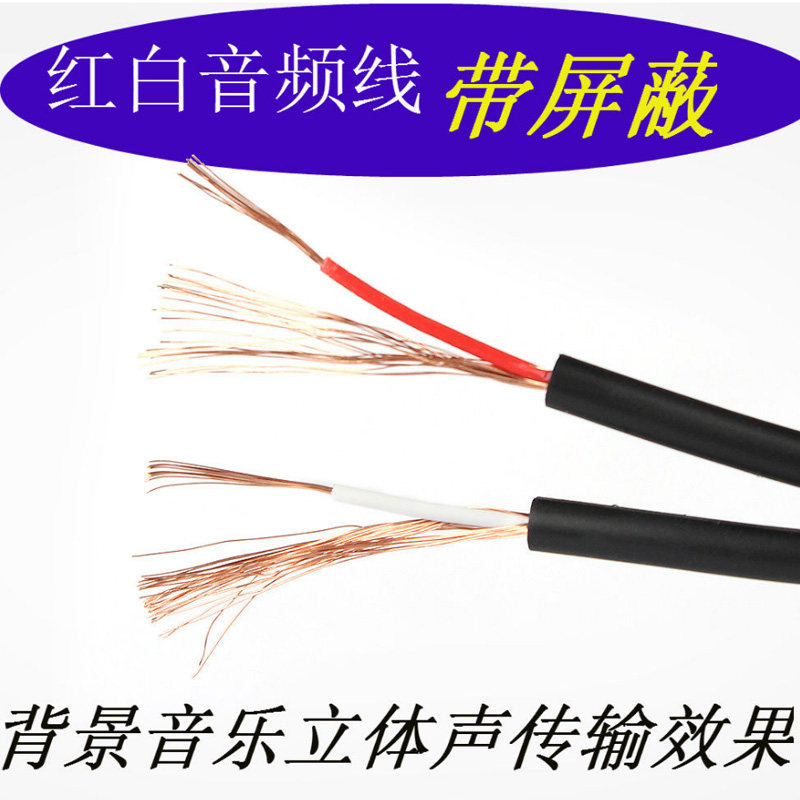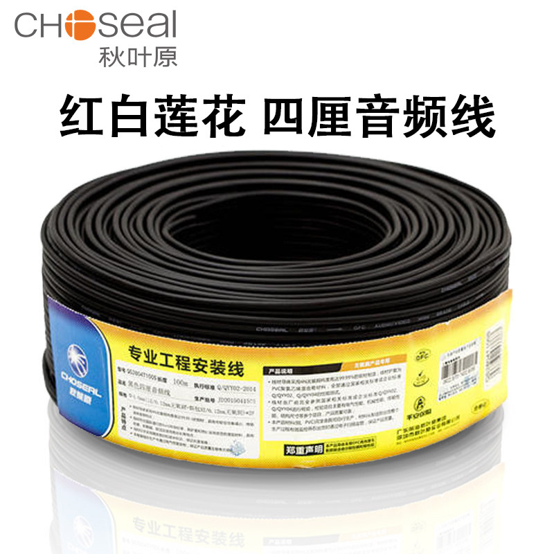 秋叶原 Q155A/QS2804 纯铜双排音频线立体声带屏蔽2RCA红白四头莲花AV背景音乐专用草坪音响双声道四厘线2股