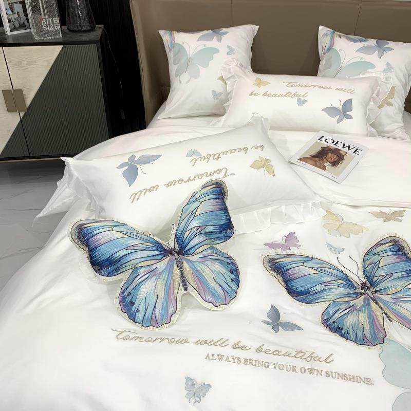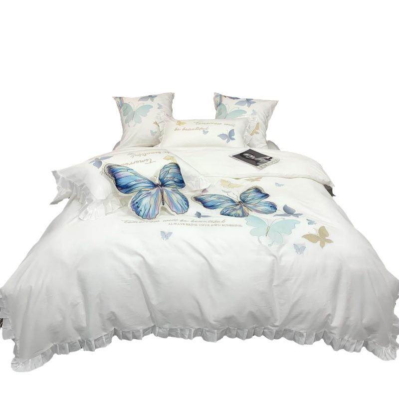 全棉四件套刺绣花边床单被套亲肤可水洗床上用品材质亲肤透气