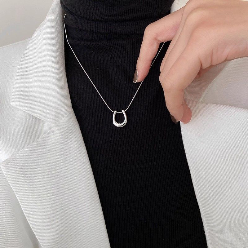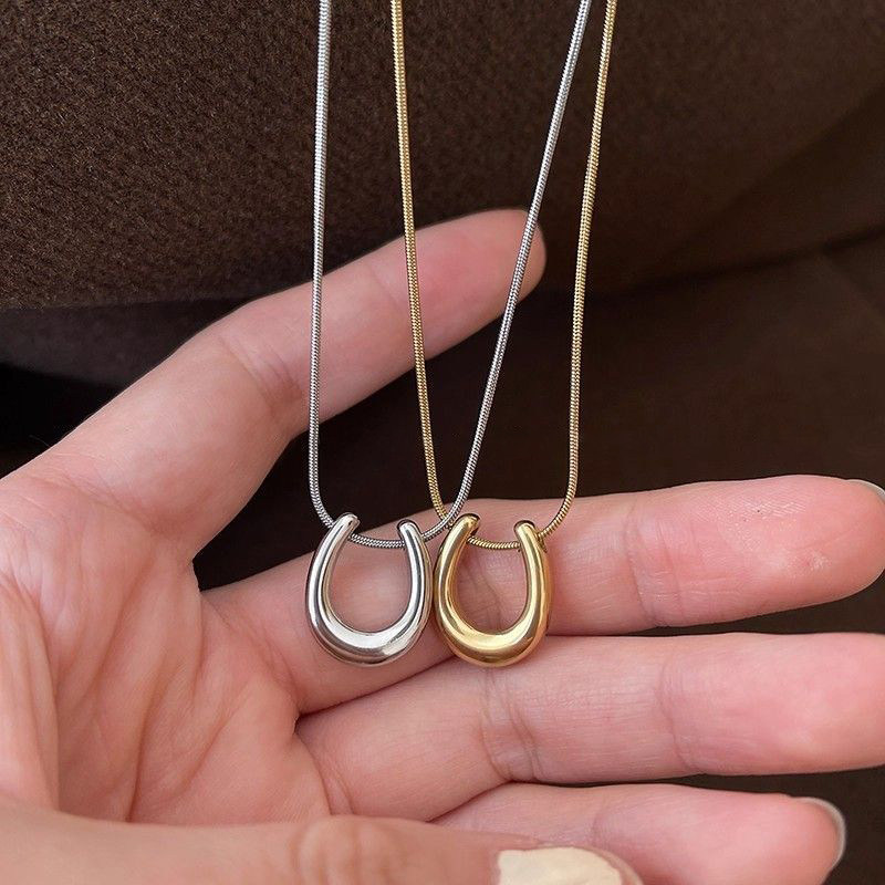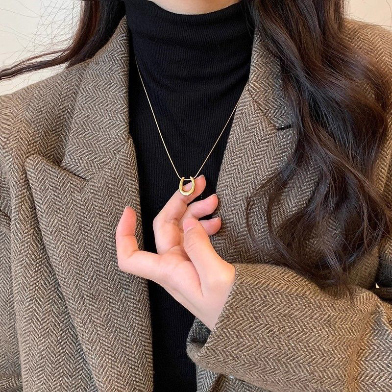 金色马蹄吊坠项链女款2025新款爆款轻奢高级感简约钛钢毛衣链配饰