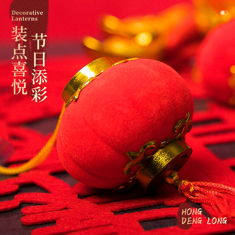 小红灯笼挂饰迷你新款2026挂树上的植绒新年装饰品氛围布置挂件E2